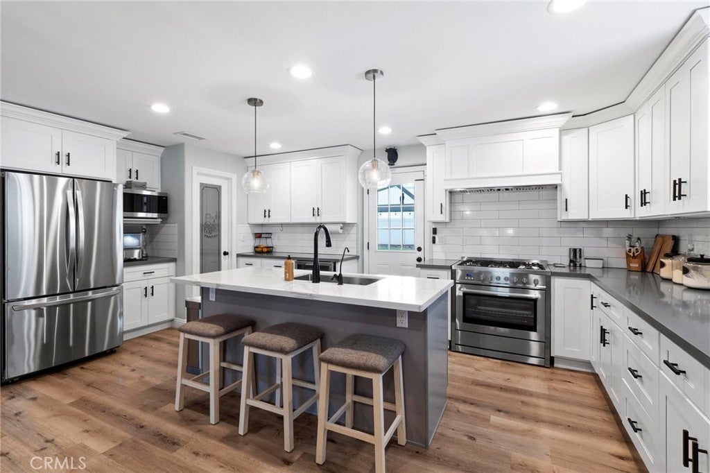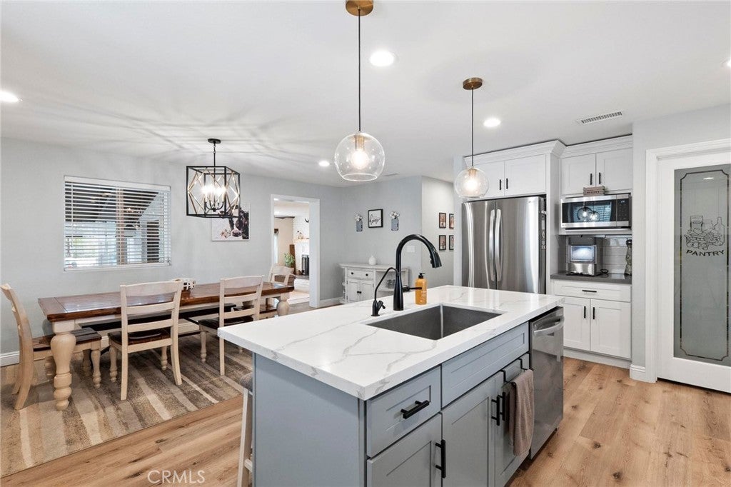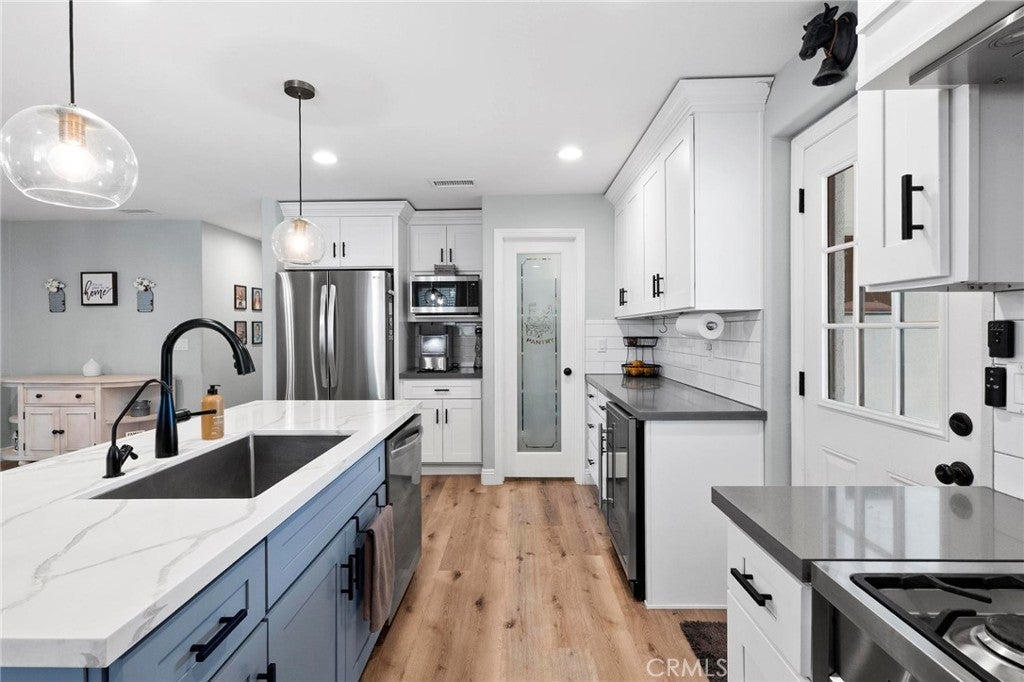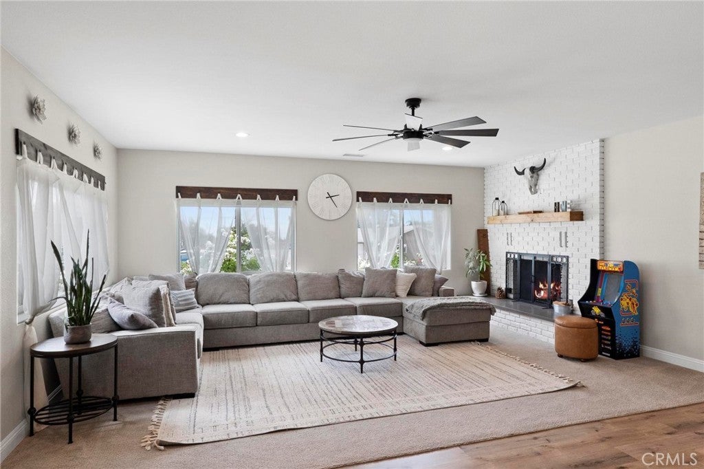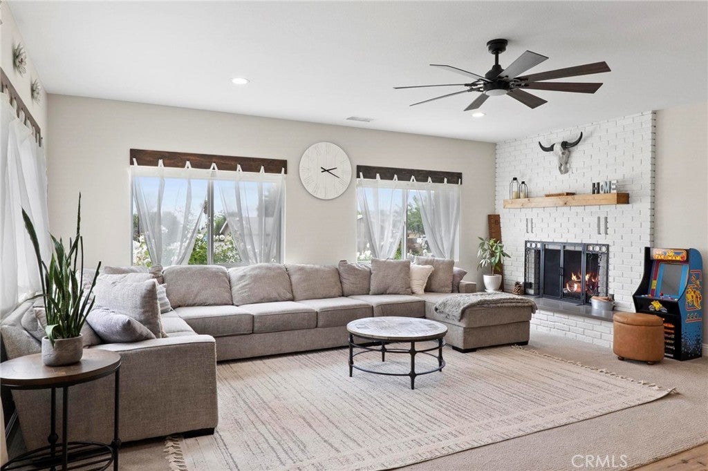 **RARE MODERN FARMHOUSE ON ALMOST AN ACRE WITH ~3,200 SQ. FT. SHOP, RV ACCESS & HIGH-END UPGRADES** Welcome to 13461 Fremont St., an exceptional modern farmhouse estate set on nearly an acre of flat, usable land in one of Yucaipa’s most desirable settings. Offering approximately 2,500 sq. ft. of thoughtfully designed living space, this single-story residence seamlessly blends timeless design with elevated modern finishes. The interior is both sophisticated and inviting, featuring four spacious bedrooms and three beautifully appointed bathrooms. A grand living room with a fireplace creates a warm yet elegant atmosphere, while a separate dining space with its own fireplace flows effortlessly into the heart of the home. A well-appointed indoor laundry room adds everyday convenience. The designer kitchen is curated for both style and function, showcasing white shaker cabinetry, striking black hardware, stainless steel appliances, an oversized industrial-style gas range, farmhouse sink, and a large center island with contrasting tones. Pendant lighting, recessed lighting, and a walk-in pantry complete this impressive space. The primary suite offers a private retreat with a generous walk-in closet and a spa-inspired bathroom featuring dual vanities and a walk-in shower with custom tile accents. Throughout the home, you’ll find designer lighting, a blend of laminate wood flooring and plush carpeting, and a light, airy color palette. Step outside to enjoy a sprawling covered patio with ceiling fans overlooking a manicured lawn enclosed by vinyl fencing. A detached two-car garage adds convenience, while the expansive grounds provide both privacy and versatility. A standout feature is the approximately 3,200 sq. ft. workshop/RV garage with two RV bays and an insulated office suite, mini-split system, bathroom, wet bar, vinyl flooring, and recessed lighting—ideal for a workspace, studio, guest space, or ultimate retreat. The property also includes a cement RV pad alongside the shop, extended concrete areas, and an additional 40-ft shipping container for extra storage. Additional highlights include two powered gates for secure access, dual driveways with extra-wide entry, rain gutters, and a Radiant Life Series 6 whole-house water filtration system. A rare offering where luxury meets versatility—this is more than a home, it’s a lifestyle. **Be sure to scroll down & click on link to video & virtual tour!**