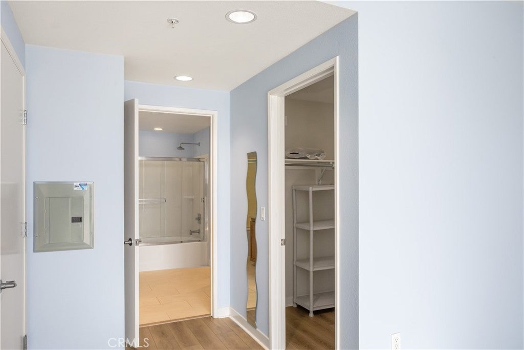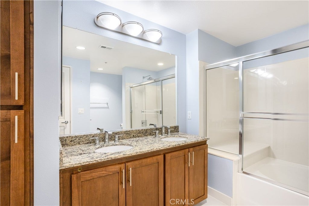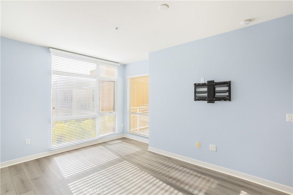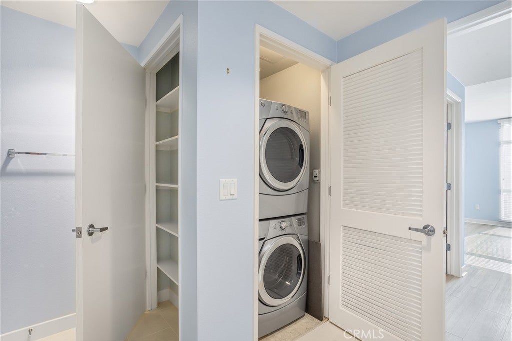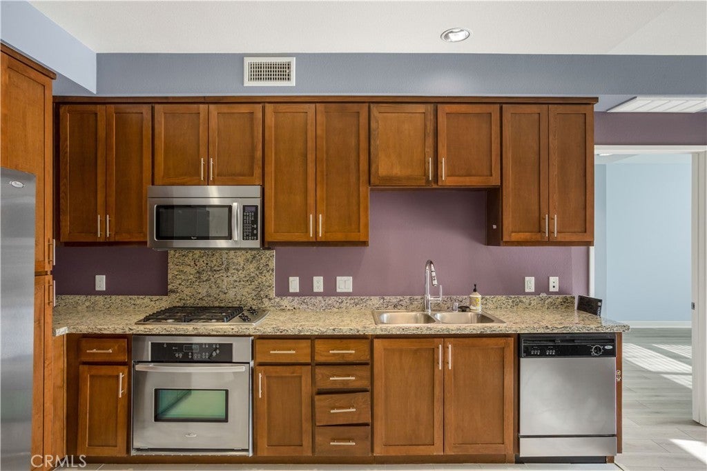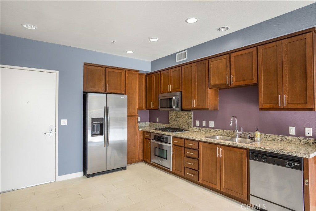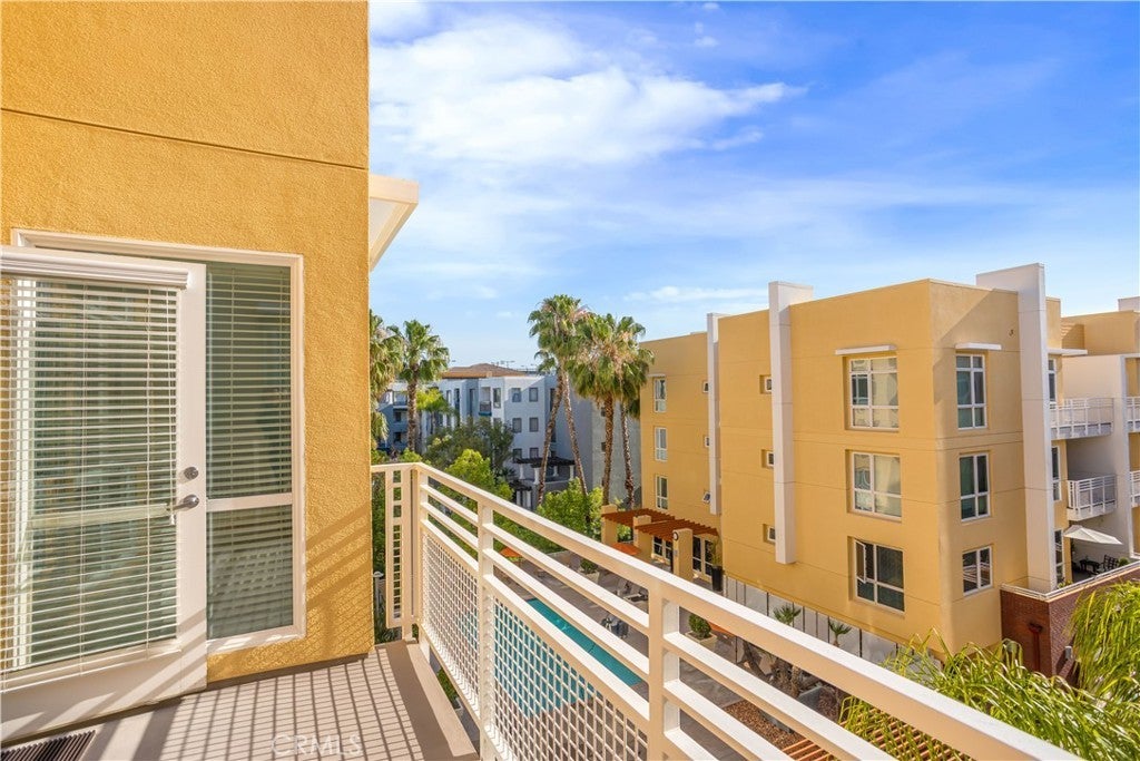 Welcome to Ascent at Warner Center, a modern full-service luxury community built in 2010 in the heart of Woodland Hills. This rare top-floor corner 1-bedroom condo offers approximately 740 sq ft—the largest 1-bedroom floor plan in the building—with no neighbors above and only one shared wall for added privacy and quiet. Enjoy a private balcony overlooking the pool courtyard and greenbelt, a premium view compared to units facing other buildings or parking structures. The open-concept layout is filled with natural light and features a spacious living area and a well-appointed kitchen with stainless steel appliances, maple cabinetry, and granite countertops. The generously sized bedroom includes a walk-in closet and an en-suite bathroom with double vanities and granite counters. Additional highlights include in-unit washer and dryer, central heat and air, recessed lighting, and ample storage. Recent upgrades include brand-new flooring throughout, updated plumbing with a new toilet, refreshed lighting, and a clean in-wall TV power setup. This unit also includes two side-by-side parking spaces (not tandem) conveniently located near the elevator, along with a large private storage unit in a secure room. Residents enjoy resort-style amenities including a pool, spa, cabanas, fitness center, clubhouse, game room, outdoor lounges, BBQ areas, fire pits, dog park, EV charging stations, guest parking, and multiple elevators. Ideally located just moments from The Village, Westfield Topanga, Warner Center Park, dining, entertainment, and major freeways.