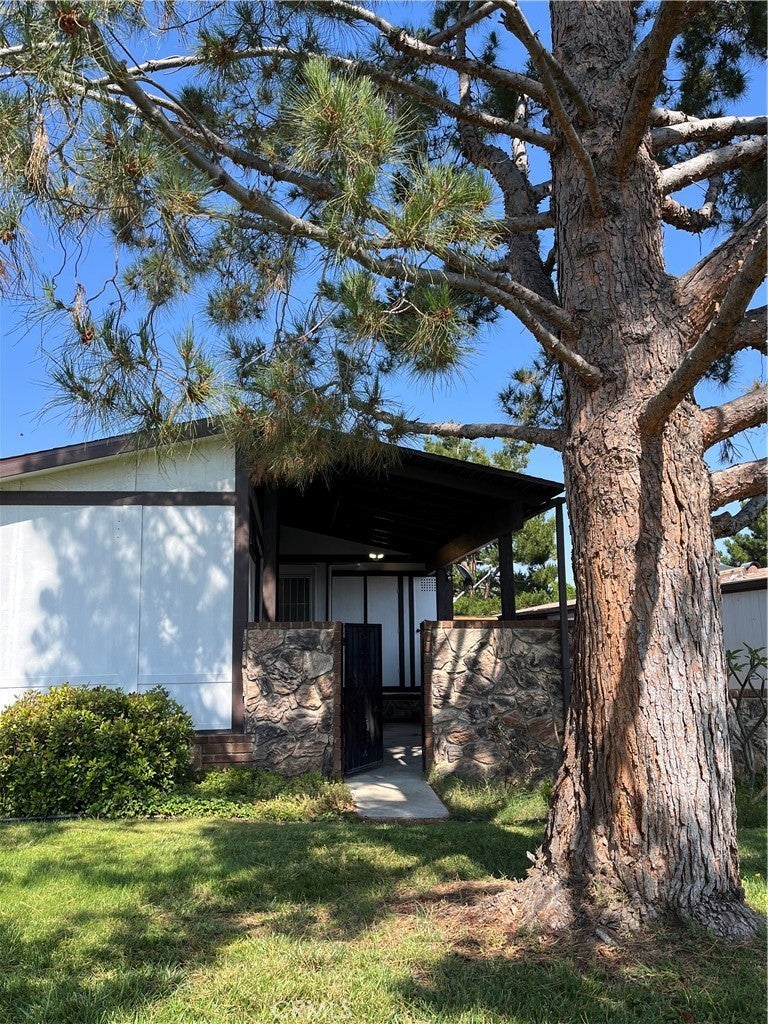 Beautiful, scenic Senior Citizens park for people 55 years or older. This 2 bedroom 2 bath home is in a wonderful location in this park. The home features an atrium, new kitchen cabinets, vaulted ceilings in the living room, built in storage cabinets off the dining area, Laundry room with brand new washer and dryer, large primary bedroom with walk in closet and en suite bath, a large private patio and a large partially covered patio. Mature trees near the home provide nice shade, view of the greenbelt / walkway area. The homeowner put on a new roof in 2022 following park guidelines for using high efficiency shingles, high reflection and 2 layers of undersheeting on this home. There is an assigned carport which is a short walking distance to the home. The park itself feels like you've stepped into a vacation resort. Park ammenities include: parties, Bunco, Bingo, fishing, potlucks, pool & spa, tennis, and tons more.
