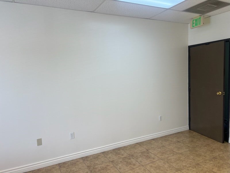 Upstairs office space. Includes all utilities. There is a his and her bathroom upstairs that are shared with the other tenants. There are a total of 26 parking spaces. There is an outside sign available for your business. This building is located on the northwest corner of Eucalyptus and Manchester Blvd.