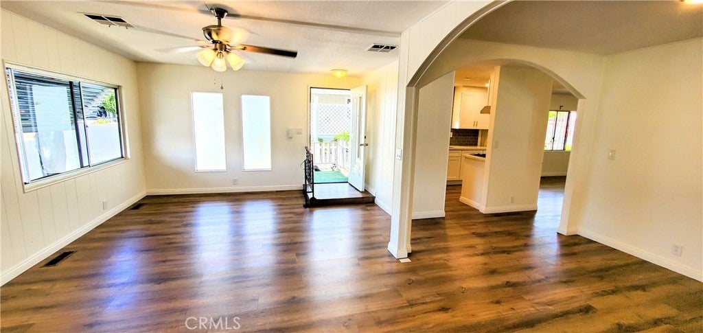 SIGNIFICANT PRICE REDUCTION on this charming & move-in ready 2-bedroom, 2-bath mobile home located in a beautifully maintained 55+ community. This charming residence has been thoughtfully updated with modern finishes and is situated in a serene park that offers a resort-style lifestyle | Step inside to discover a bright, freshly painted interior featuring brand-new vinyl flooring and recessed lights throughout. The remodeled kitchen is a chef’s dream, showcasing new cabinetry, gleaming quartz countertops, and newer stainless steel appliances. A cozy den just off the kitchen provides the perfect spot for a home office, reading nook, or extra living space. | Both bathrooms have been tastefully updated with new vanities and tile flooring. Enjoy year-round comfort with central air conditioning and forced air heating. A washer & dryer combo is included with the sale! | The fully fenced yard is ideal for relaxing or gardening, complete with fruit trees and mature plants. This home offers privacy, style, and comfort in equal measure. | Community amenities are top-notch and include a highly upgraded clubhouse with a modern kitchen, spacious sitting area with a large TV, a library/computer room, pool, spa, gym, BBQ area, laundry facilities, and a fully fenced dog park. Pet-friendly and welcoming, this park provides everything you need for an active and enjoyable lifestyle. | Space rent is $1,450/month. Motivated seller eager to make a deal! Don’t miss the opportunity to enjoy low-maintenance living in a vibrant and friendly 55+ community!