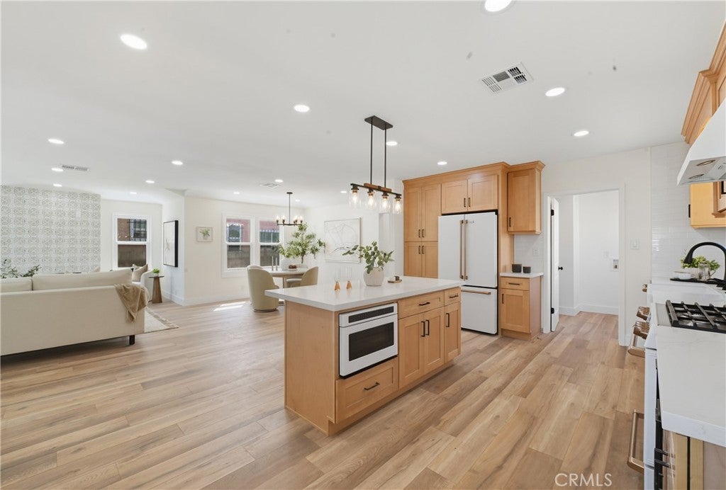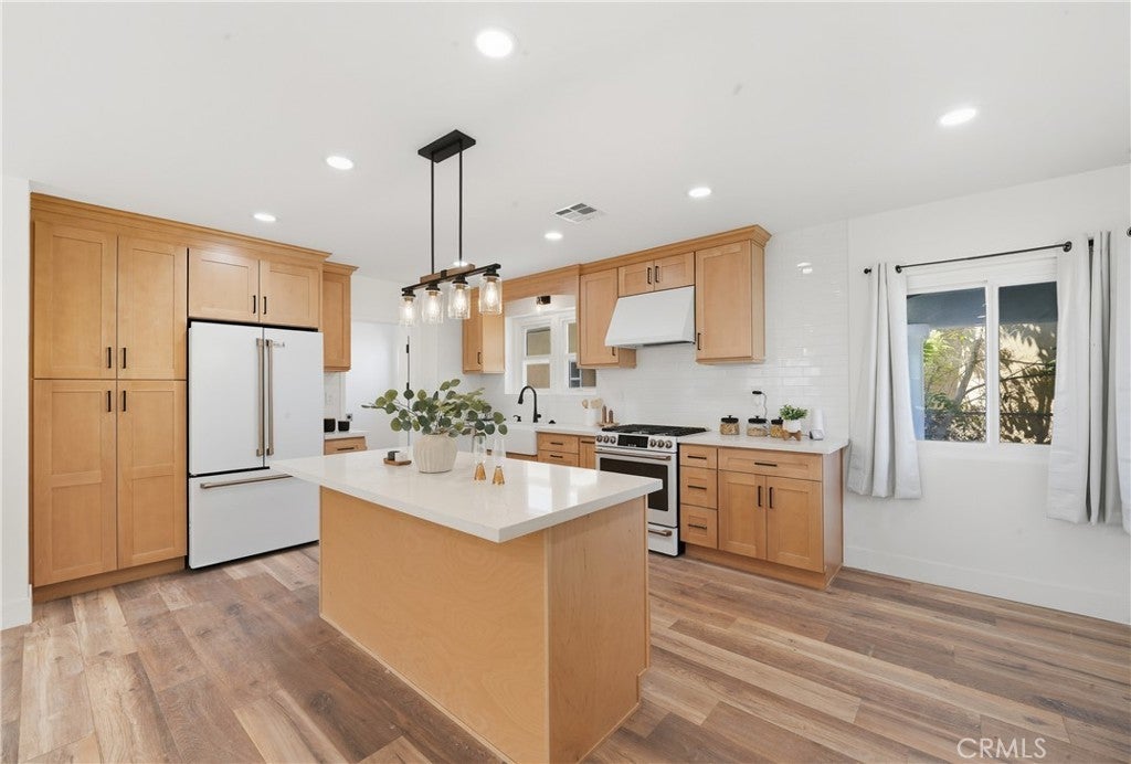 Welcome to this beautifully renovated Spanish-style home in Inglewood! Offered at $1,048,888.00, this move-in ready residence features ~1,860 sq ft of living space on a generous 7,059 sq ft lot. The home has been reimagined to a modern, open concept design. Recent high-end upgrades include fresh paint inside and out, all new copper plumbing, and a 200-amp electrical panel. The heart of the home is the upgraded kitchen, boasting natural wood cabinets, quartz countertops, and new white Café appliances. Two completely remodeled bathrooms feature new tile, tubs, fixtures, glass enclosures and modern vanities. Vinyl-wood flooring flows throughout. Lighting has been fully updated — recessed lights and new fixtures everywhere, plus all new interior and glass closet doors. The master suite is expansive, with a large walk-in closet, a huge master bathroom, and elegant French doors that open to the backyard. A first bath offers a tub plus separate glass-shower enclosure. Additional features include an automatic garage door, newly finished garage with drywall and epoxy floor, newer noise reduction insulated windows, and hallway storage cabinets. Outdoors, the backyard is designed for low maintenance with artificial turf and fresh landscaping, privacy hedges and fencing and low voltage lighting while the front yard also offers beautifully renewed landscaping and lush grass. Bonus room attached to the garage adds versatile space, ideal for an office, studio, additional storage or potential ADU! The home is newly finished with dual-pane windows, drywall, and recessed lighting. It offers central AC & heat for year-round comfort. Don’t miss this one-of-a-kind Spanish gem, combining modern luxury, thoughtful design, and prime location!