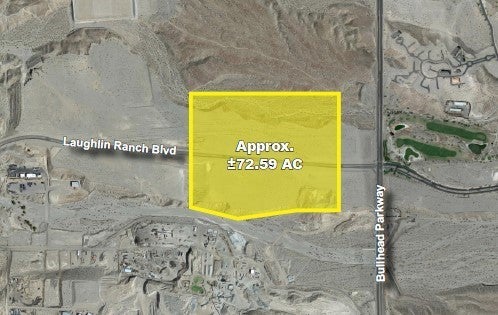 • Location: Bullhead City, Mohave County, Arizona • Total Site Area: +/- 72.59 Acres • APN: 213-14-055 • Zoning: Light Industrial • General Plan: Laughlin Ranch GP • Utilities: 12” Water Line and 8” Sewer Line along Laughlin Ranch Blvd • Purchase Price: $3,000,000 • Price/Acre: $41,000 The property being offered consists of approximately 72.59 acres of undeveloped land located along the north and south sides of Laughlin Ranch Blvd where it has 2,000 feet of frontage on each side. Laughlin Ranch Blvd is a newly constructed thoroughfare that runs east to west from Bullhead Parkway to Highway 95, which provides access into Las Vegas and California via its intersection with the I-40. The property is just to the south of the Laughlin/Bullhead International Airport and about 1.5 miles from the Arizona/Nevada border along the Colorado River. Nearby the property is the Laughlin Ranch golf club and community, as well as Laughlin, NV which is a resort and gaming industry town. In terms of the property specifics, the land has a desert terrain and is generally flat throughout. Bullhead City is less than 100 miles from Las Vegas and 300 miles from Long Beach and Los Angeles.
