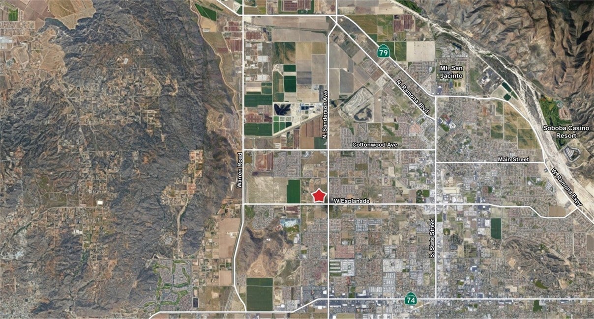 The subject property is made up of two available parcels per Parcel Map No.37863 and labeled as Parcels 1 and 3. Parcel 2 is already built out as an existing Dollar Tree, Parcel A is an existing Circle K gas station/convenience store and car wash and Parcel 4 is currently being entitled for roughly 125 single-family detached homes. The site has flat topography with curb and gutter in place along Parcel 1 (0.74 Net AC) and an existing signal at Sanderson Ave & Esplanade Center. The property has approximately 450 feet of combined frontage along Sanderson Ave which has traffic counts of 16,203 cars per day and 6,171 cars per day on Esplanade Ave. To the east of the property, across Sanderson Ave, is the existing San Jacinto Esplanade Retail Center with existing national tenants such as Walgreens, Starbucks, Jack in the Box, Subway, as well as several other smaller restaurant, retail, and medical tenants. To the north of the retail center is an existing medium density residential subdivision. Sewer and Water are serviced by EMWD with existing sewer and water in place along Sanderson Ave.