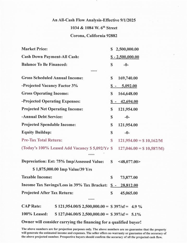 100% LEASED!! This pride of ownership retail center in located in the heart of the City of Corona! 6th Street is one of the busiest streets in Corona and near the 91 freeway for quick access! A monument sign is conspicuously located near the city sidewalk for excellent visibility!! These retail centers are rarely found on the market when all of the tenants are paying their rent and renewing their leases!! The property has a diverse mix of tenants offering a steady income stream and potential for higher rents due its high demand location!! The owner just completed a new roof, new ADA railings, and many other improvements to maintain tenant goodwill. This property is a must see as an excellently located, in excellent condition, and 100% occupied with well known tenants!! Bring your cash or 1031 buyers! ***This property will not last thanks to the seller will now consider SELLER FINANINCING TO QUALIFIED BUYERS!!!***