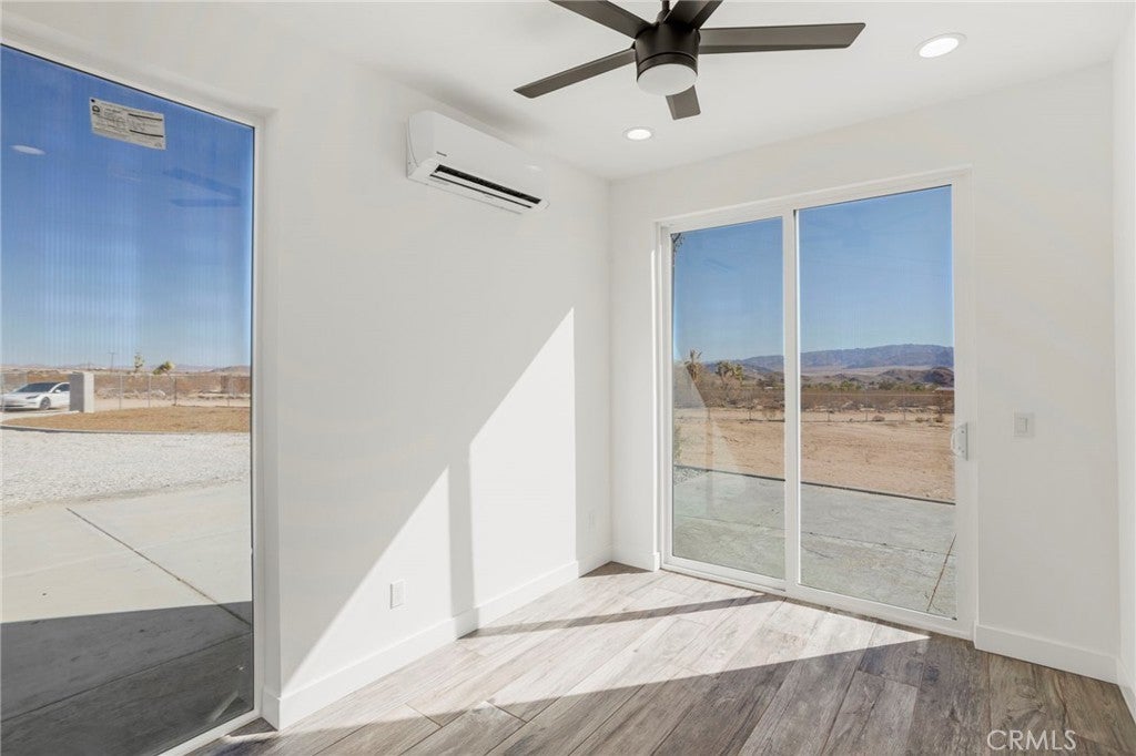 GREAT PRICE REDUCTION....Amazing opportunity to own a beautiful 3 bedroom 2.5 bath in Joshua Tree. Brand new modern pool home has been meticulously build with recessed lights, large windows, mini split units, tile floors, quartz countertops, electric tankless water heater, 2KW solar panels (installed by closing) and so much more! Check out the open floor plan with Livingroom and dining area open to the kitchen. The large backyard features an open yard with concrete patio and a beautiful pool. All appliances are electric!! Property sits on 2+ acres of usable land.