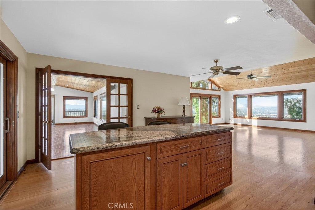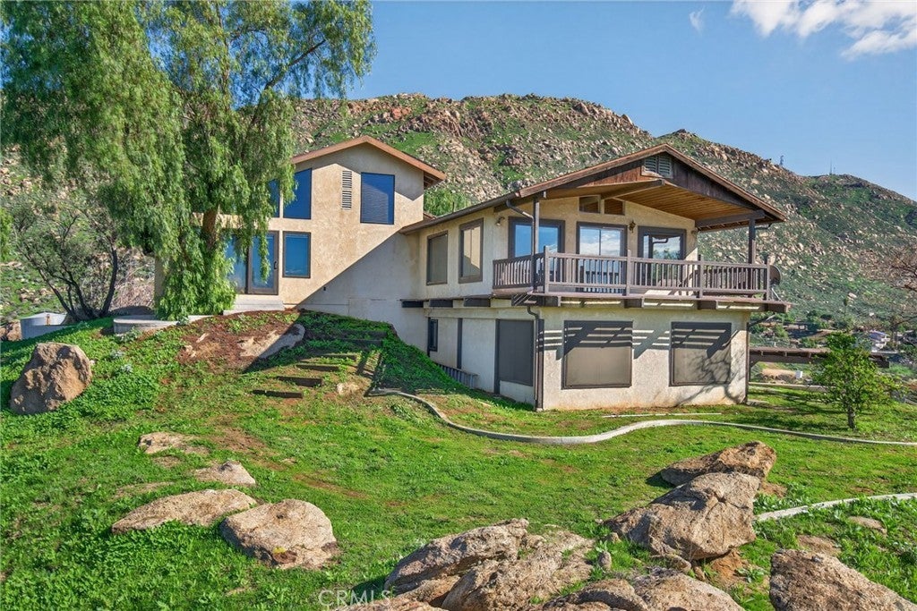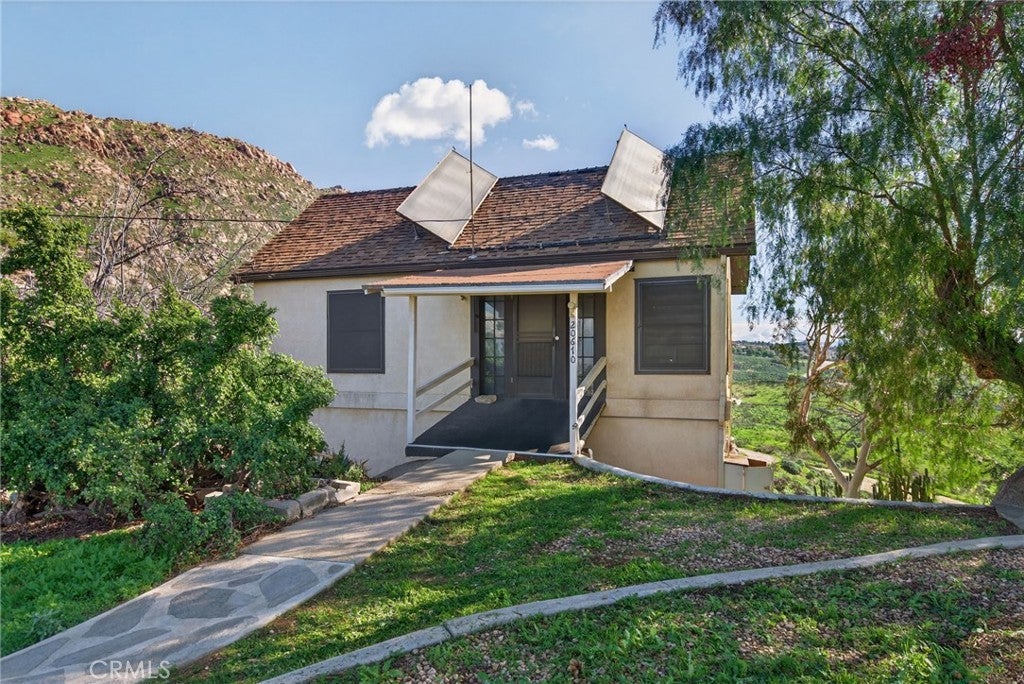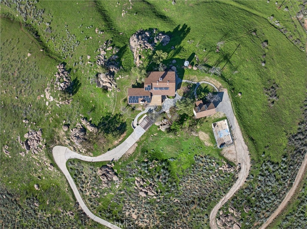 Imagine living in a serene hilltop custom-built home designed for luxury and modern convenience. Nestled in the Box Springs Mountain range, this home offers both privacy and expansive open living spaces. Perfect for those seeking off-the-grid living, this 12-plus-acre paradise offers the perfect blend of self-sufficiency and connection with two wells, solar panels, and two septic systems. Plus, you’re connected to electricity with the public utility providing extra peace of mind. Step inside to discover exquisite hardwood flooring and broad windows that flood the space with natural light and showcase breathtaking panoramic views. The vaulted natural wood ceilings in the living spaces provide a spacious atmosphere. There are two main living rooms, which both offer places for entertaining, dining, and enjoyment of this hill top paradise. The dining and living rooms boast unparalleled views of Mount Baldy, creating a mesmerizing backdrop for every meal and moment. Picture yourself relaxing on the living room balcony, taking in the stunning west-facing vistas of the mountains and twinkling city lights. With two bedrooms upstairs and a primary suite downstairs, this home provides fantastic flexibility for any lifestyle. The lower bedroom in the main home could easily be converted into a JR ADU, offering great potential for multi-generational living or additional revenue. Additionally, the property features a detached ADU which sits over the two-car garage. Also home has a half-court basketball court. The ADU has its own living area, kitchen, bedroom, and bathroom (450 sq ft +/-)—a fabulous bonus for guests or potential rental income. Zoned as R1, there's potential to subdivide the property for future investment or development opportunities. This hilltop retreat is your chance to experience the best of both worlds—secluded, self-sustaining living with the comfort and connection of modern amenities. Don't miss out on this unique opportunity to call this remarkable property your home.