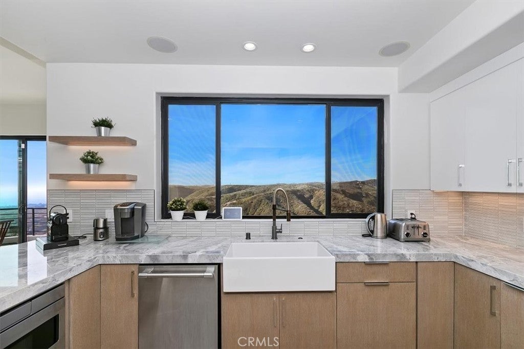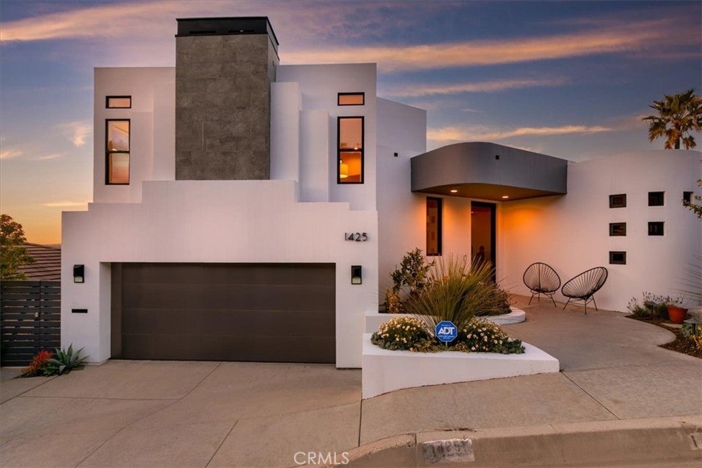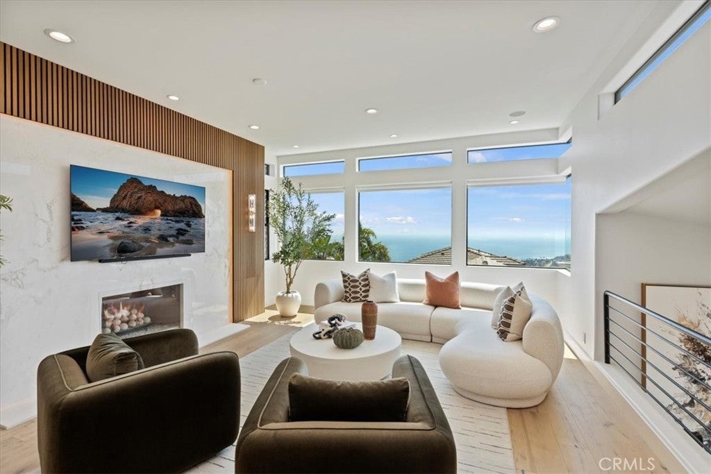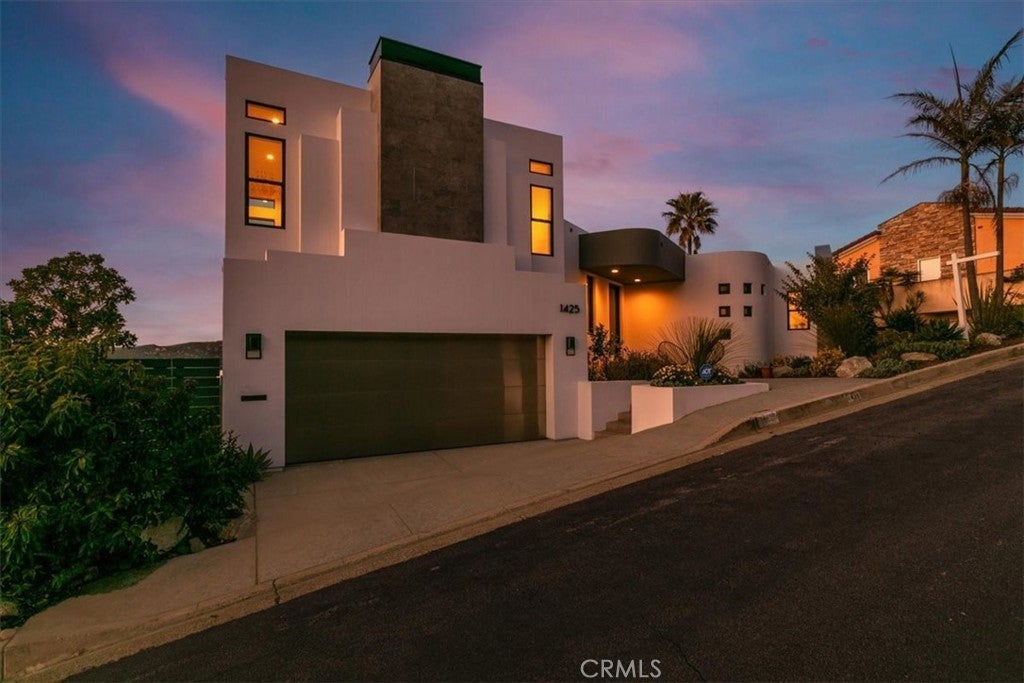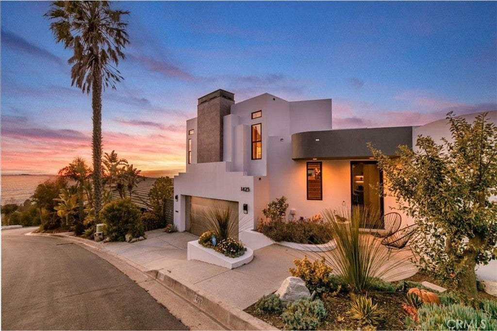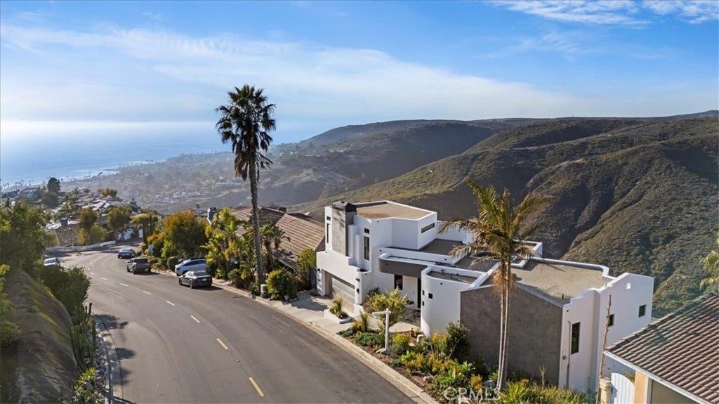 Stunning Ocean-View Retreat at 1425 Skyline Drive, Laguna Beach. This top-notch Laguna Beach home offers ocean views that will leave you breathless. Whether sitting in the spacious living room, gazing out of the frameless windows, or relaxing on your private balconies, you'll enjoy breathtaking views of the canyons, the stunning ocean, Catalina Island, and even snowcapped mountains. These exceptional vistas are visible from almost every room, indoors and outdoors. This is the lifestyle you get in this famous Skyline Drive home in Laguna Beach. Fully remodeled inside and out in 2023, this home combines timeless style and modern luxury, with every detail thoughtfully designed to amaze. A new Heating & Air system (2024) ensures you stay cozy in the winter and cool in the summer. With 4 bedrooms and 4 bathrooms, this home also boasts Provenza Old World hardwood floors, Sonos audio throughout, and Onyx Glass windows for a sophisticated look. The gourmet kitchen is a true masterpiece, featuring imported Bardiglio Versilis marble countertops, stained rift oak cabinets, a farmhouse sink, and a striking backsplash of Sessemo Raku tiles. It's equipped with top-of-the-line appliances, including a 24” Thermador gas range with double convection ovens, Thermador dishwasher, and a Sharp microwave drawer. The adjacent dining room features a custom-built beverage cooler, perfect for entertaining. The main-floor master suite offers a luxurious retreat with a high-end shower clad in Terrazzo tile, dual multi-function shower heads, and two walk-in closets. The powder room is also conveniently located on this level, alongside a grand living area with a fireplace framed in marble and wood décor, and, of course, breathtaking views. Downstairs, you'll find three spacious bedrooms filled with natural light, all featuring upscale finishes. A junior suite is large enough for a sitting or desk area includes a frameless glass window and ocean-view balcony. Its bathroom is finished with floor-to-ceiling tile and a floating vanity. Set on a hillside property of 12,760+/- sq. ft., this home is engineered with advanced technology, including a foundation reinforced deep into bedrock with steel concrete columns, ensuring an earthquake-resistant structure. Anneliese Schools is less than 5 miles away Experience the Laguna Beach lifestyle just minutes from the beach and village, offering upscale dining, boutiques, art galleries, cultural events, biking, swimming, and surfing