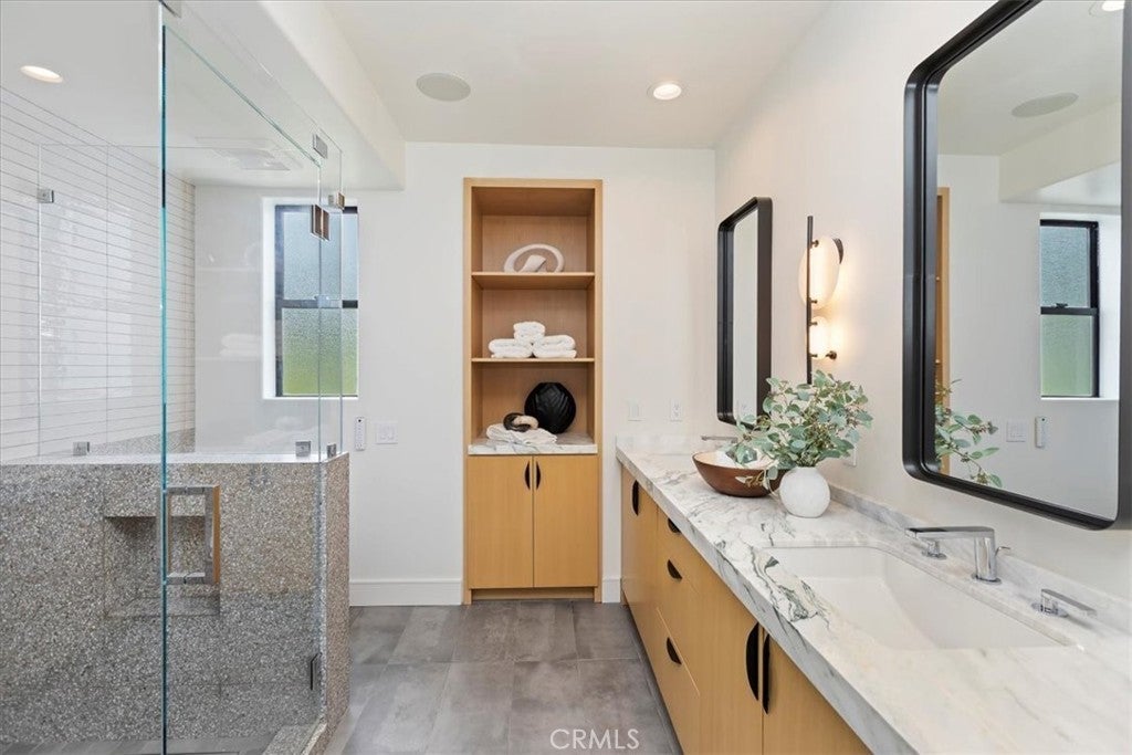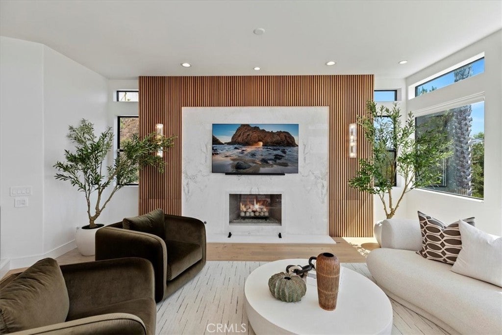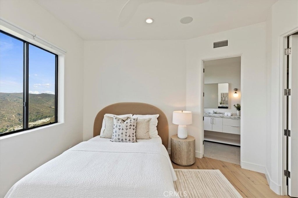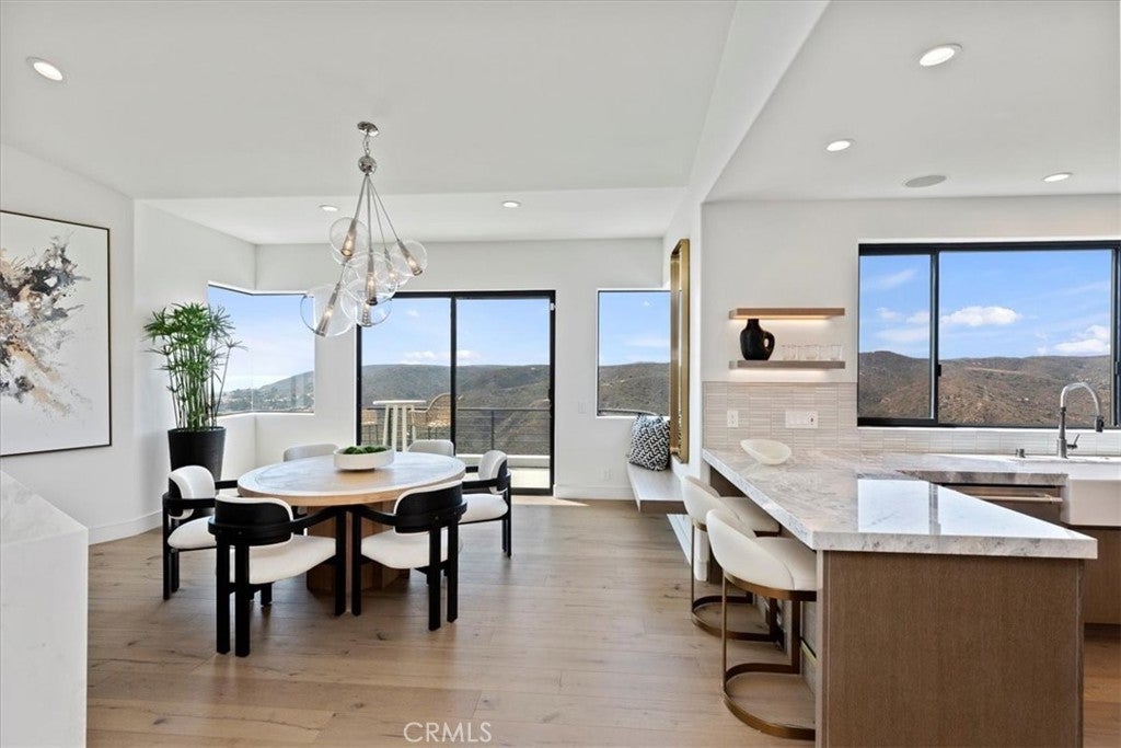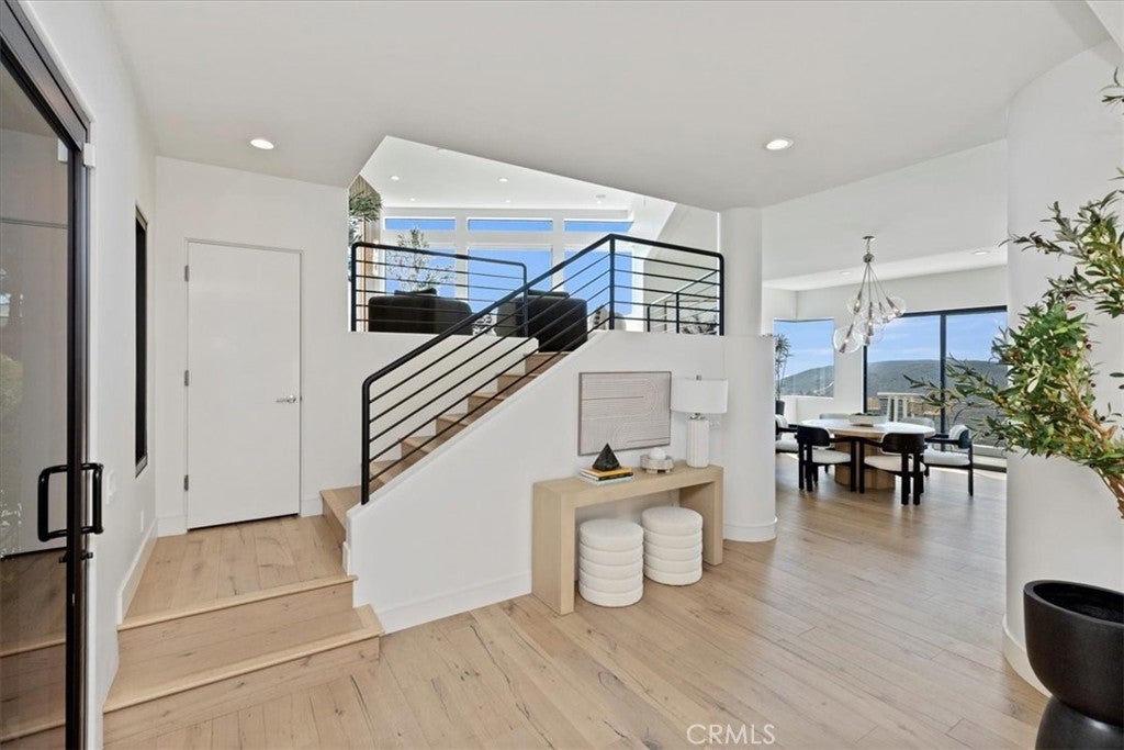 Stunning Ocean-View Retreat at 1425 Skyline Drive, Laguna Beach. This top-notch Laguna Beach home offers ocean views that will leave you breathless. Whether sitting in the spacious living room, gazing out of the frameless windows, or relaxing on your private balconies, you'll enjoy breathtaking views of the canyons, the stunning ocean, Catalina Island, and even snowcapped mountains. These exceptional vistas are visible from almost every room, indoors and outdoors. This is the lifestyle you get in this famous Skyline Drive home in Laguna Beach. Fully remodeled inside and out in 2023, this home combines timeless style and modern luxury, with every detail thoughtfully designed to amaze. A new Heating & Air system (2024) ensures you stay cozy in the winter and cool in the summer. With 4 bedrooms and 4 bathrooms, this home also boasts Provenza Old World hardwood floors, Sonos audio throughout, and Onyx Glass windows for a sophisticated look. The gourmet kitchen is a true masterpiece, featuring imported Bardiglio Versilis marble countertops, stained rift oak cabinets, a farmhouse sink, and a striking backsplash of Sessemo Raku tiles. It's equipped with top-of-the-line appliances, including a 24” Thermador gas range with double convection ovens, Thermador dishwasher, and a Sharp microwave drawer. The adjacent dining room features a custom-built beverage cooler, perfect for entertaining. The main-floor master suite offers a luxurious retreat with a high-end shower clad in Terrazzo tile, dual multi-function shower heads, and two walk-in closets. The powder room is also conveniently located on this level, alongside a grand living area with a fireplace framed in marble and wood décor, and, of course, breathtaking views. Downstairs, you'll find three spacious bedrooms filled with natural light, all featuring upscale finishes. A junior suite is large enough for a sitting or desk area includes a frameless glass window and ocean-view balcony. Its bathroom is finished with floor-to-ceiling tile and a floating vanity. Set on a hillside property of 12,760+/- sq. ft., this home is engineered with advanced technology, including a foundation reinforced deep into bedrock with steel concrete columns, ensuring an earthquake-resistant structure. Anneliese Schools is less than 5 miles away Experience the Laguna Beach lifestyle just minutes from the beach and village, offering upscale dining, boutiques, art galleries, cultural events, biking, swimming, and surfing
