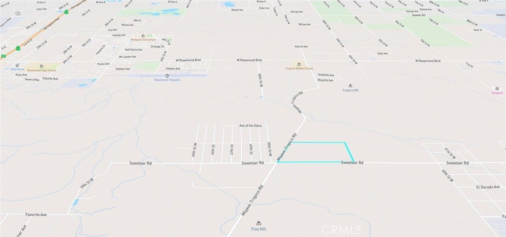 Corner of Mojave and Sweetser. All flat and usable. Utilities in the street. Fantastic opportunity for the savvy investor to purchase this wonderful land for only 4K per acre. What a bargain. Within the path of growth. Landcaster only a few minutes away. Just off Highway 14 and Rosemond Blvd. Land there not making more of it.
