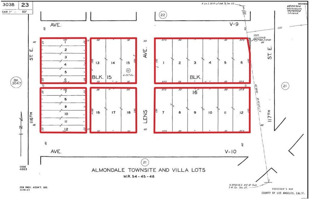APN: 3038-021-037, 3038-021-040, 3038-021-041, 3038-022-046, and 3038-023-032 Coordinates: 34.503944, -117.922583 5 parcels being sold together in Pearblosson, CA. Total acreage of 54.91. These lots are zoned commercial and run along 116th St in Pearblossom.