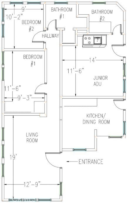 HUGE PRICE REDUCTION! SFR (SINGLE FAMILY RESIDENCE) 2 bed, 2 bath plus a den could be used as 3rd bedroom. Or Jr ADU-Option that could bringin additional income! Home has a vintage flair, (new floors, freshly painted interior, new water heater). big windows fill the Livingroom with light. One bedroom as its own entrances large space could be rented as studio as it has its's own full bathroom (see concept drawings). Great opportunity for investor or first time home buyer! DOWN PAYMENT ASSISTANCE AVAILABE, Low taxes, NO HOA, close to public transportation and freeways.