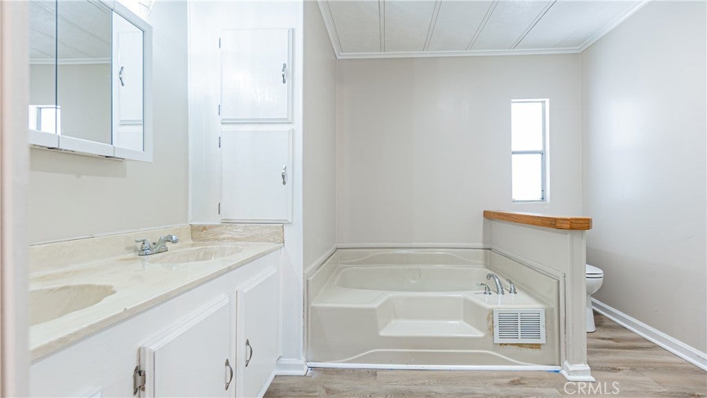 Located in the desirable city of Corona, this beautifully updated 2-bedroom, 2-bath home offers 1,344 sq ft of comfortable living space in a gated, all-ages manufactured home community. Enjoy quick access to the 15 and 91 freeways, along with nearby shopping, dining, and entertainment options. Interior features include brand new flooring throughout, fresh interior and exterior paint (including the carport), and updated kitchen cabinets that provide a clean, modern feel. The spacious layout is perfect for both daily living and entertaining. The community offers resort-style amenities, including a swimming pool, spa, fitness center, clubhouse, library, card room, and a playroom for kids—ideal for families or anyone seeking comfort and convenience. The card room is perfect for social gatherings or relaxing game nights, while the playroom provides a safe, nearby space for children to enjoy. Located within the highly rated Corona-Norco Unified School District. No HOA fees. Space rent applies; please contact listing agent for details.