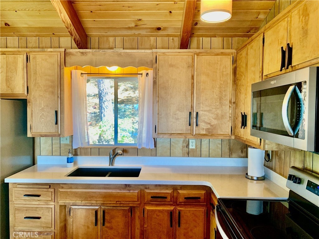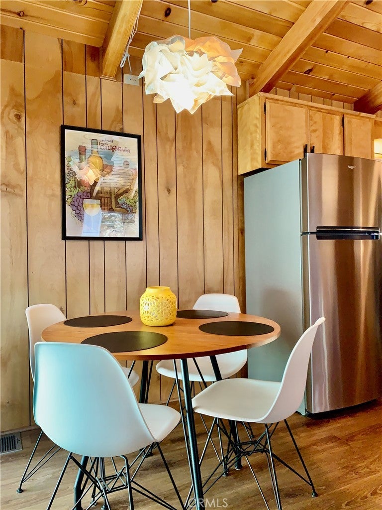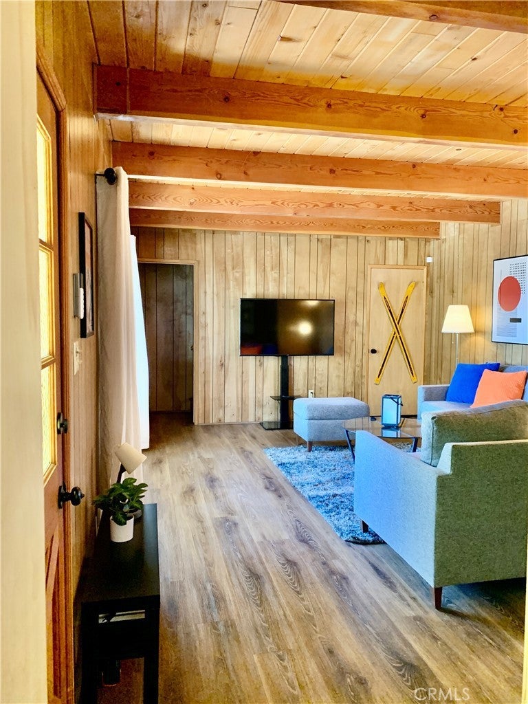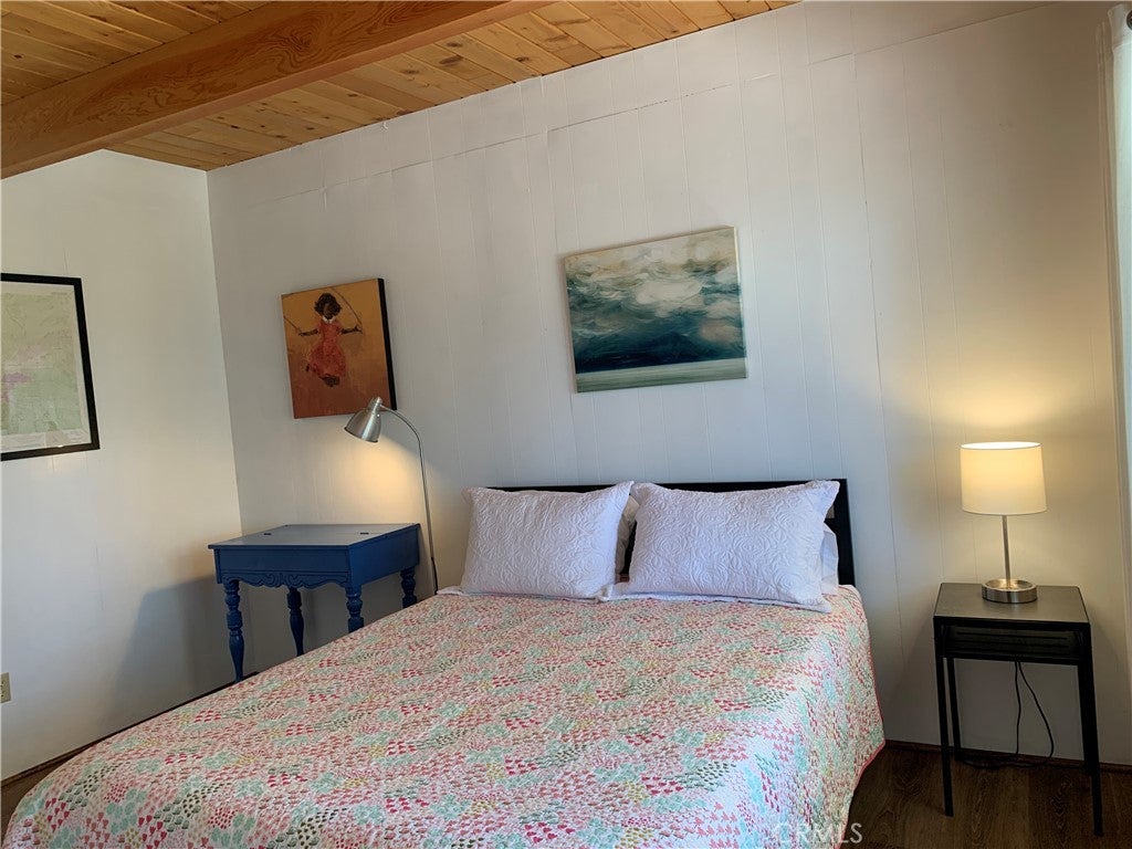 Come and see this Spectacular Mountain home nestled in the trees for that tree house effect, located in the quaint town of Green Valley Lake. This three bedroom and one bathroom cabin is nicely upgraded with new paint and vinyl plank flooring. Nice large den to host family and friends on those special occasions. Bright open great room concept. Kitchen has new quartz countertops and refinished kitchen cabinets. Beautiful wood breakfast bar to enjoy your morning coffee. Nice deck off living room for that indoor/outdoor living to relax and enjoy summer BBQ`s. Cozy brick fire place for those cold winter nights. Nice small deck off dining area for entertaining. This cabin has a new paint job and an asphalt driveway for easy parking and access. Nice storage shed. Large buildup for additional storage or possibly a second bathroom and laundry. Walk to Town, Lake and marina for boating, fishing and swimming Close to hiking trails for those avid hikers or bird watchers. Come and experience what Green Valley Lake has to offer you!