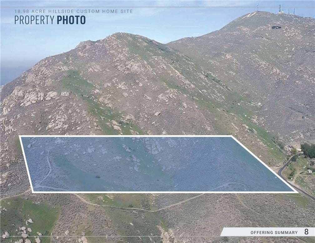 • Rare Custom Home Lot with Scenic Views • Numerous Hiking Trails in Vicinity • Great Location in High Income Neighborhood of Moreno Valley • In Close Proximity to Shopping & Schools • Easy Access to the Pigeon Pass Road 60 Freeway On/Off Ramp