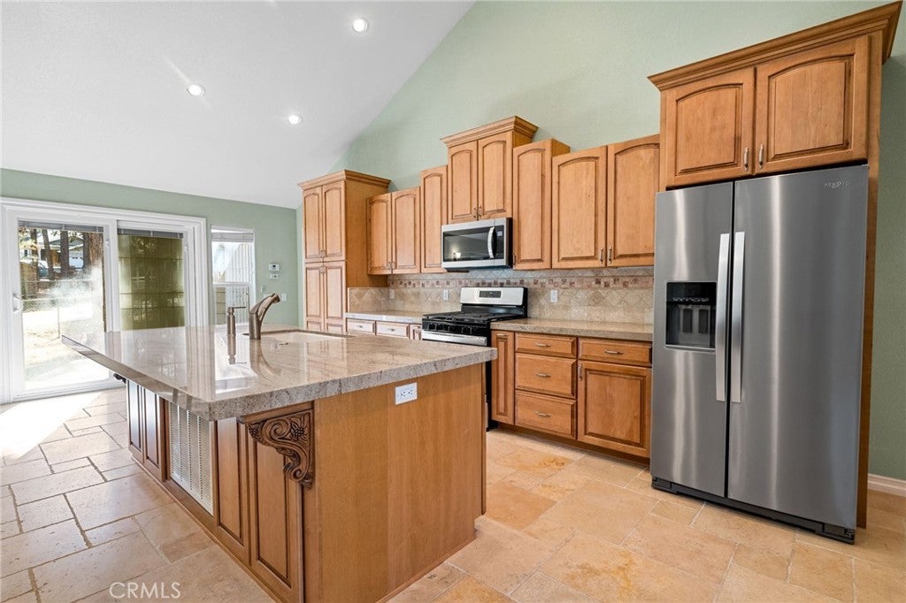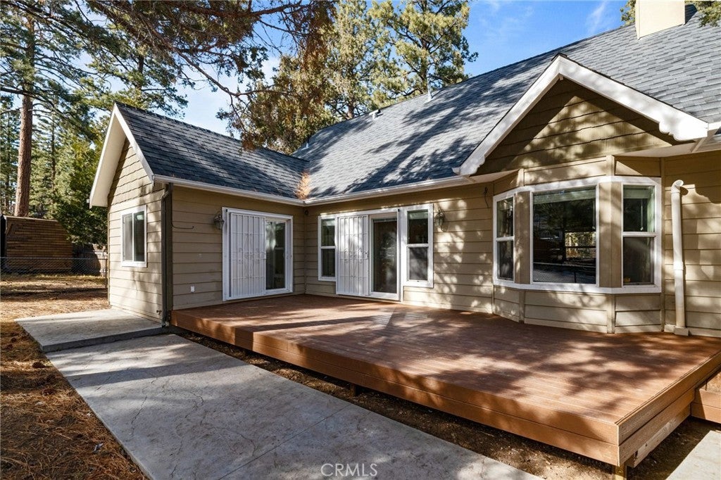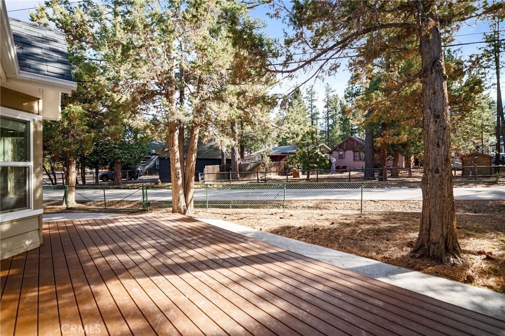 Picture-Perfect Single-Story Retreat in Poet’s Corner, Big Bear Nestled on a spacious, flat corner lot in the pristine Poet’s Corner neighborhood of Big Bear, this picture-perfect single-story home offers the ideal mountain retreat—just a 10-minute drive to the slopes via Division Drive. Whether you're a nature lover, skier, or hiker, this one-of-a-kind, single-level home delivers comfort, privacy, and all the amenities of home, while evoking the peaceful charm of being tucked away in the woods. Built in 2006 and offering 1,453 sq ft of thoughtfully designed living space, this open-concept gem features travertine flooring in the main living areas, plush carpeting in the bedrooms, and a large great room with vaulted ceilings and a cozy wood-burning stove. The dream kitchen boasts endless counter space, abundant storage, and brand new stainless steel appliances—perfect for entertaining or enjoying quiet nights in. The split floor plan ensures privacy, with the spacious primary suite situated apart from the two additional bedrooms. The luxurious en suite bathroom includes a walk-in shower and a large jetted jacuzzi tub, offering a spa-like experience at home. ***SELLER TO PROVIDE $15,000 CONCESSION TO BUYER*** Additional features include: New PEX plumbing throughout Tankless hot water heater Oversized single-car garage with additional depth for storage or a workshop Large attic with a window—potential for a bonus room or studio Fully fenced yard with ample space for your RV, boat, or other toys Brand-new all-weather Trex deck connecting the primary bedroom and family room Located minutes from hiking and nature trails, Big Bear Lake, ski resorts, Oktoberfest, and Big Bear Village, this home offers year-round recreation and relaxation. Never used as a rental, this lightly lived-in second home is truly turnkey and ready for its next chapter.
