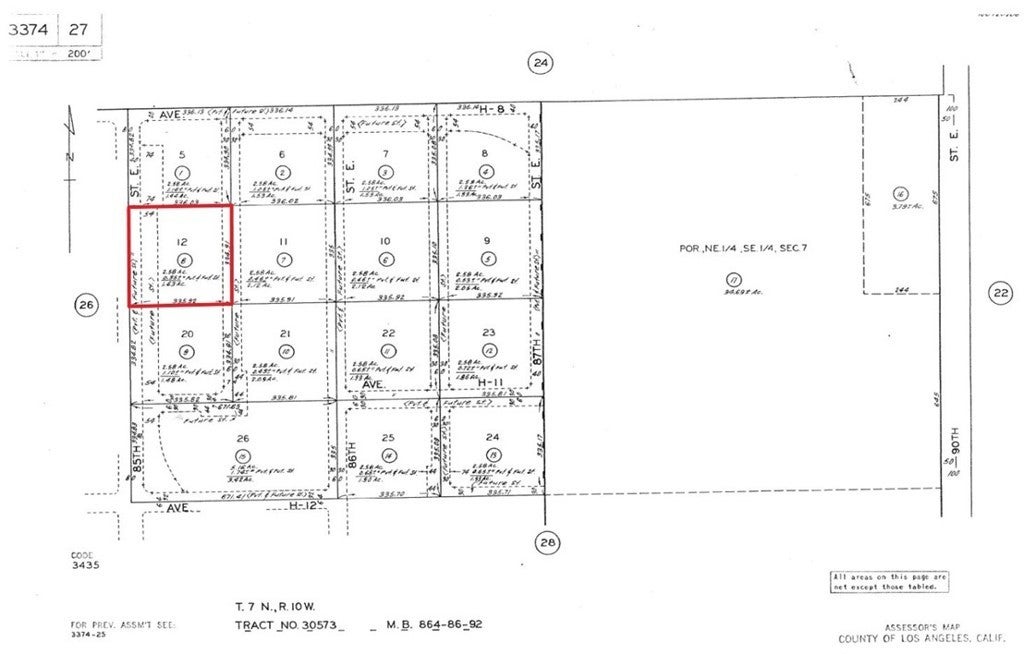 3374-027-008 Coordinates: 34.710944, -117.978139 APN: 3374-027-008 Coordinates: 34.710889, -117.977083 2.59 acres for sale in Lancaster, CA. This lot is located near the corner of E Ave I and 90th St E in the Roosevelt area of Lancaster, CA. The adjacent parcel is also for sale APN# 3374-027-007.
