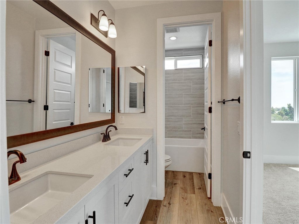 Where Your Dream Farmhouse Style Home Comes to Life in a peaceful cul-de-sac @ Wildwood Estates, Lot 19 isn’t just a parcel of land—it’s the beginning of something extraordinary. A half-acre+ lot a beautifully designed 3,849 SQFT home is about to take shape. You’ll be welcomed by the open skies over the mountains, & a neighborhood that feels miles away from city noise—but just minutes from every convenience. The entryway stretches long & elegant, that leads you through tall decorative doors & into a space flooded w/ natural light. A formal dining room for holiday meals & Sunday dinners, w/ swinging galley doors to a butler’s pantry & walk-in storage. Step further into the heart of the home: the open-concept kitchen & great room. Oversized quartz island, custom cabinetry in the finish of your choice. Space is built for entertaining—w/ a 48” professional-grade range & double ovens, a 40” built-in refrigerator, wall oven, microwave, & even a commercial vented hood. You’re not just cooking here; you’re hosting, gathering, & living. Beyond the kitchen, wide glass sliders open to a covered rear patio—perfect for California’s indoor-outdoor lifestyle. Imagine dinner al fresco under soft string lights or morning coffee w/ views of the San Bernardino mountains. When the day winds down, you retreat to your downstairs primary suite w/ a sliding barn door that opens to a bathroom designed like a private spa. A deep Roman tub, an oversized walk-in shower w/ bench seating & optional rain head, & walls lined w/ designer tile create a daily escape. Your wraparound walk-in closet is generous & built for both utility & indulgence. Upstairs, you’ll find four spacious bedrooms & a large bonus/teen room—perfect for a game room, home theater, or creative studio. The subfloors & staircase have been thoughtfully upgraded for sound insulation, so even a house full of activity feels serene. This home doesn’t just look good—it lives smart: Owned solar panels, Dual-pane windows, fully insulated attic (top & bottom), 7¼” baseboards, No HOA, RV-potential accessible side yard w/clean-out, Vinyl privacy fencing around a backyard big enough for a pool, ADU, or workshop. The best part? There’s still time to choose your finishes. From countertops to flooring, paint colors to cabinetry—you can personalize every inch to fit your vision. Photos & Virtual rendering shown are of the model home & not subject property.
