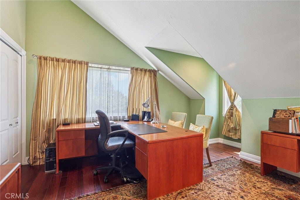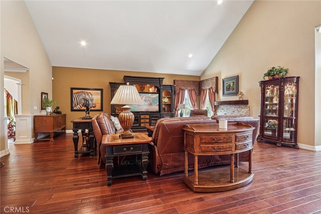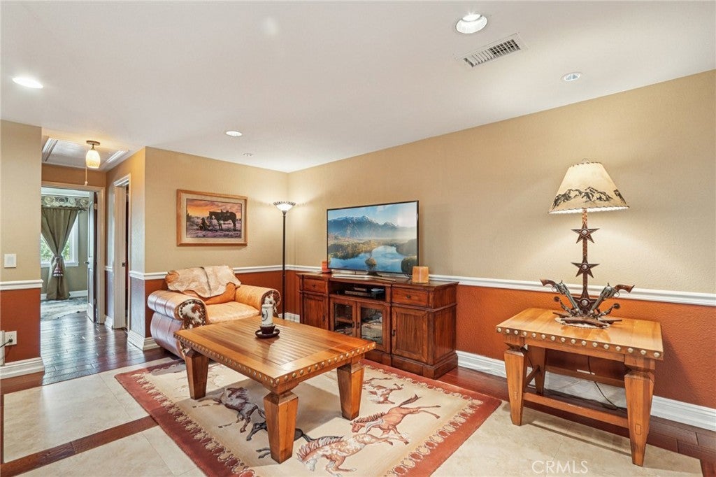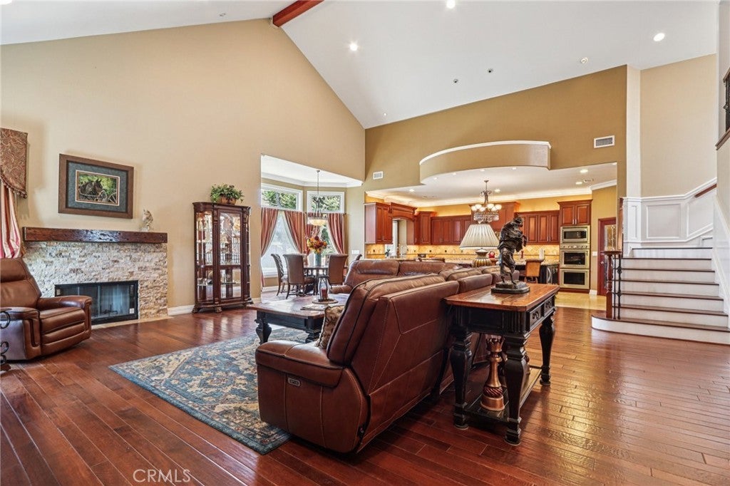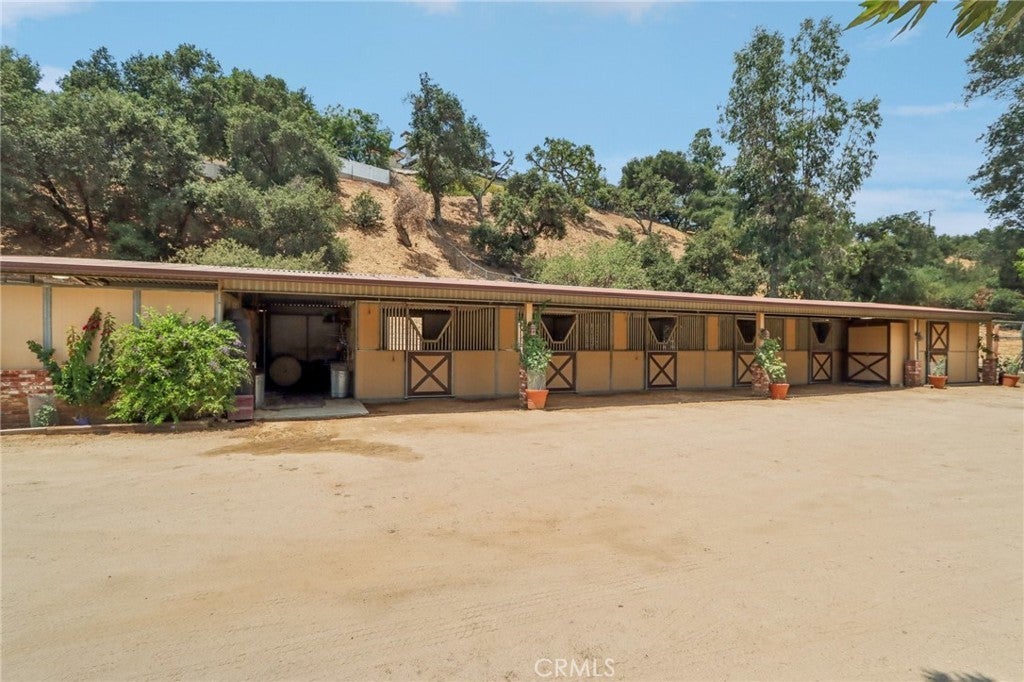 Rare 2.12-Acre Equestrian Estate on Walnut Creek Trail in San Dimas. Exceptional opportunity to own one of San Dimas’ premier equestrian properties! Situated on a private 2.12-acre lot with direct access to the Lyman Staging Area & trailhead. This custom 4 bed, 3.5 bath home (plus a 3/4 bath in the barn) offers the perfect blend of luxury living, functional space & horse-friendly amenities. Inside, enjoy a spacious living room with large picture windows that frame breathtaking views. Adjacent is a generous office with a walk-in closet—easily convertible into a fifth bedroom. A step up leads to the elegant formal dining room, adorned with custom woodwork & a full-wall hutch ideal for china & linen storage. The heart of the home is a dream kitchen outfitted with high-end Thermador appliances, including a stove with a warming drawer, double ovens, & oversized built-in refrigerator. Rich cherry wood cabinetry, granite counter tops, a walk-in pantry, & an oversized island with bar seating make it the ultimate gathering space. The adjoining great room with 22’ ceiling, fireplace & a sun-drenched breakfast nook creates a warm, open atmosphere perfect for everyday living and entertaining. Upstairs offers more space to unwind, featuring a custom bar, game room, additional bedroom, and full bath. Down the hall past the dining room & powder room, is the private primary suite that boasts a fireplace, sliding doors to a secluded patio, a spa-like bathroom with oversized shower, Jacuzzi tub, and an expansive walk-in closet. Two additional bedrooms and a hallway bath complete the main sleeping quarters. Step outside and down the slope to a thoughtfully designed 6-stall barn, complete with a large 16x24 stall currently used as a workshop, stall mats, fly system, ventilation, feeders, tack room, hay storage, wash rack, & a bathroom with washer/dryer hookups. The riding arena is spacious with room to expand, multiple shady turnouts offer the horses comfort & a variable- speed hot walker is located at the edge of the horse area. All landscaping is on a drip system for year-round beauty. Additional highlights include custom iron & brick fencing around the entire estate, plentiful trailer parking & a dump station. This is a prime location just minutes from the 210/57/10 freeways, Ontario Airport, Cal Poly Pomona & the Claremont Colleges. This rare equestrian sanctuary is the perfect blend of rural charm & urban accessibility—schedule your private tour today!