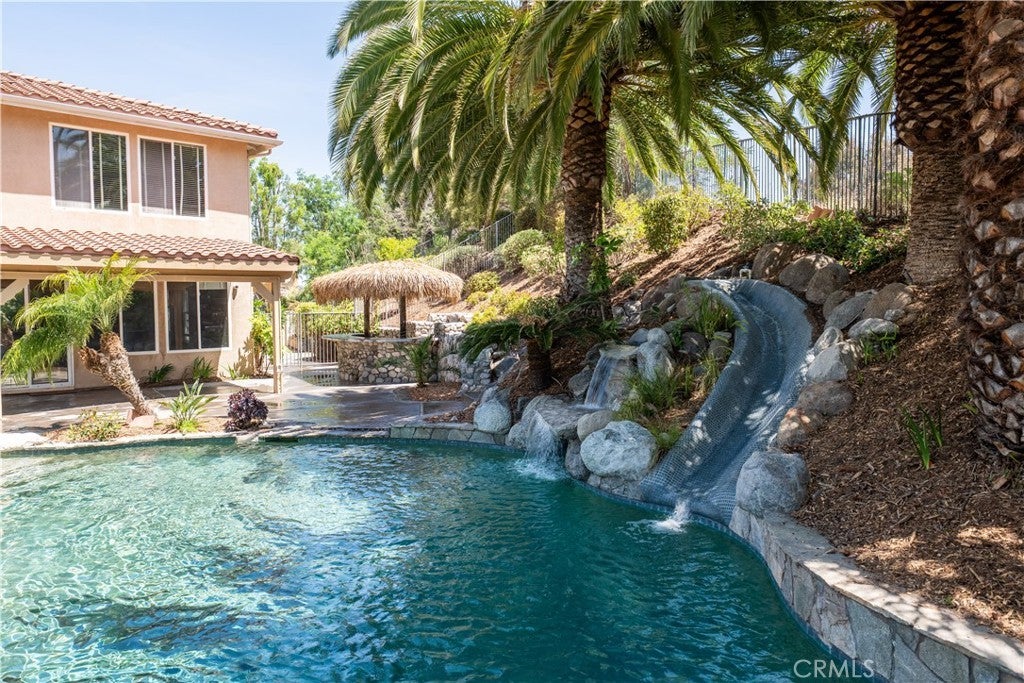 Stunning Temeku Hills Home in the Masters Community. Welcome to your dream home in the prestigious Masters Community of Temeku Hills, nestled in beautiful Temecula, California. This meticulously designed home offers luxury, comfort, and endless opportunities for entertaining. You Will Love the Spacious Living. This expansive home boasts 5 bedrooms, 4 bathrooms, and stretches across 3,557 square feet of elegant living space. Prime Location situated on a 16,000+ square foot lot at the end of a cul-de-sac, this home offers privacy, peace, and stunning views of the Legends Golf Course. Conveniently located near the renowned Temecula Wine Country, Old Town Temecula, award-winning schools, and major freeways, this is a community where convenience meets luxury. Backyard Oasis, step into your own private retreat with a sparkling pool complete with three waterfalls, a pool slide, and integrated jacuzzi. Host unforgettable gatherings with a cement cabana featuring a BBQ, fridge, and fire pit, all surrounded by mature palm trees and lush landscaping. Multi-colored pool lights transform the evenings into a tranquil paradise. Chef’s Dream Kitchen designed for culinary enthusiasts, the massive kitchen features a large island with built-in lighting and storage, top-tier steel appliances, a wine fridge, an upgraded stove, and a pantry. Thoughtfully crafted for Chef Timothy Ralphs, this kitchen is ready to inspire your inner gourmet. Expansive Living Spaces to the open-concept living room and dining areas, complete with cozy fireplaces and large windows, create a warm and inviting atmosphere. A huge family room with a gas fireplace offers the perfect space to relax with your loved ones. Luxurious Master Suite with enormous master bedroom includes two walk-in closets, an upgraded shower, and a soaking tub for a spa-like escape. Additional Features:3-car garage with treated flooring, RV parking, Separate laundry room with sink, Downstairs bedroom/office space for convenience, Updated flooring and plenty of natural light with multiple sliders and windows to showcase your serene backyard, A Golfer’s and Host’s Paradise,Living in Temeku Hills means peace, privacy, and breathtaking views of the Legends Golf Course. Whether you’re a golfer, a wine enthusiast, or someone who loves to entertain, this home provides the perfect setting. Don't miss your chance to own this one-of-a-kind property. Schedule a tour today and start turning your dream lifestyle into reality.