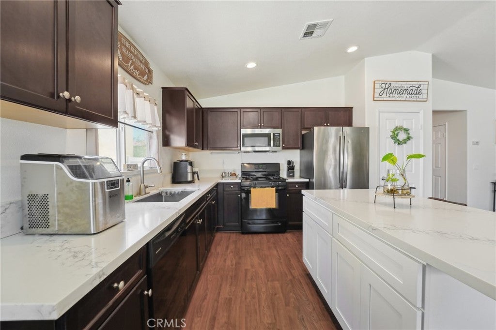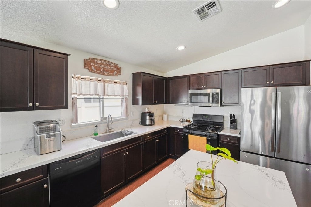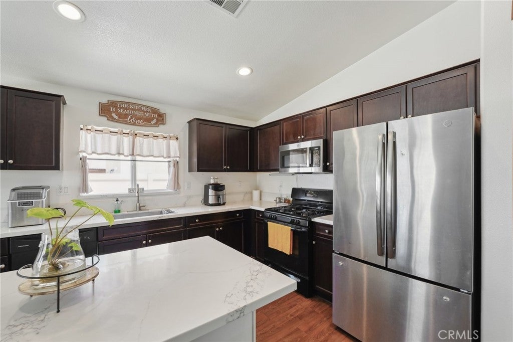 Upgraded & Ready to Impress – 4-Bedroom Gem with a Custom Kitchen Island! Welcome to 15756 McVay Lane, a beautifully maintained DR Horton home built in 2017, located in the thriving community of South Adelanto. This spacious 4-bedroom, 2-bathroom home offers 1,892 square feet of thoughtfully designed living space with an open-concept layout, high ceilings, and a wide entry hallway that leads into a light-filled great room. FIRE SPRINKLER SYSTEM LOCATED INSIDE THE HOME! HOME ALSO COMES WITH A TANKLESS WATER HEATER! The kitchen has been enhanced with a newly added island, providing additional prep space and seating—perfect for casual dining and entertaining. It also features a full walk-in pantry, modern cabinetry, and matching stainless steel appliances, including a stove, dishwasher, and refrigerator. The flexible floor plan includes a fourth bedroom with gorgeous French doors that can also function as a den, office, or guest space. The private primary suite offers a spacious walk-in closet and an en-suite bath with dual sinks and a stand-up shower. A separate laundry room is conveniently located near the two-car garage and includes an oversized hallway storage closet. Outside, enjoy a well-maintained backyard with custom paver patio, block wall fencing, and vinyl side fencing—ideal for outdoor gatherings. The front and back yards are professionally landscaped for low maintenance and great curb appeal. The home is solar-ready, offering future energy efficiency. Located just minutes from Highway 395, the 15 Freeway, local schools, and shopping centers, this move-in-ready home combines comfort, convenience, and modern upgrades in one of Adelanto’s most rapidly developing areas.