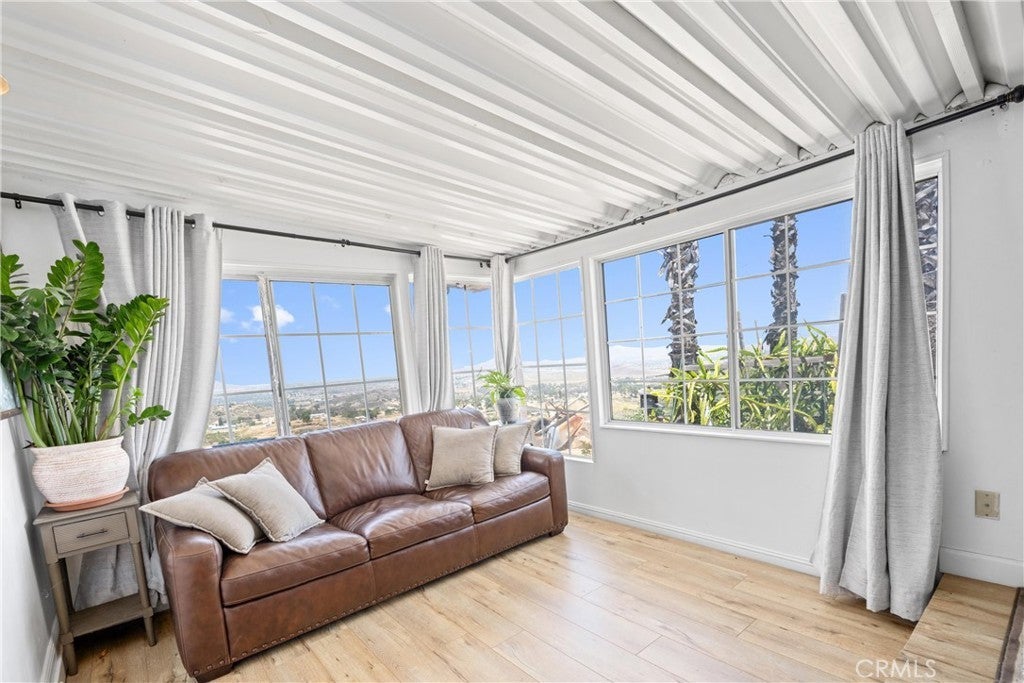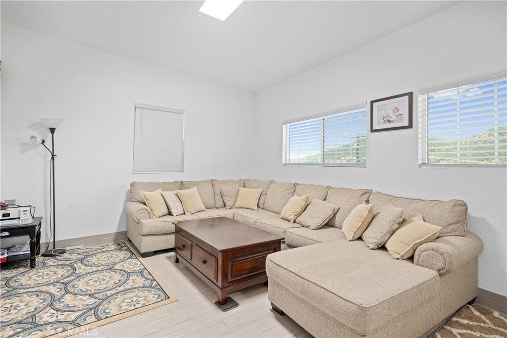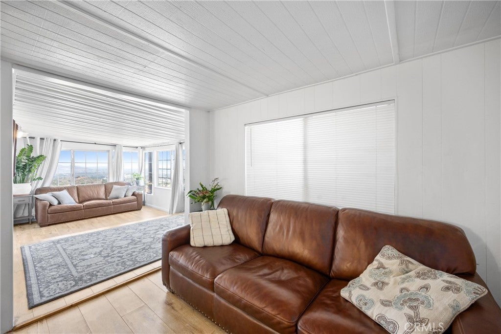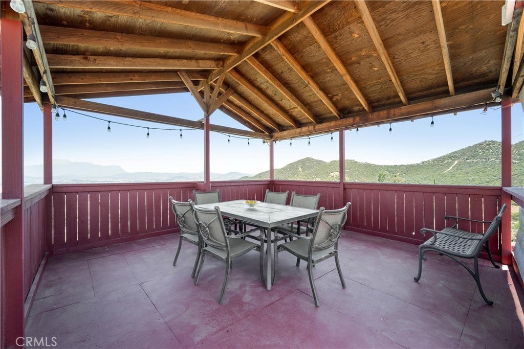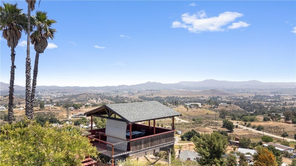 This unique property offers the perfect blend of comfort, versatility, and breathtaking views. The main residence is a clean, well-maintained 2-bedroom, 2-bath home that showcases an open-concept layout and panoramic views from the main living area. From the moment you walk in, pride of ownership is evident throughout. Both bedrooms are spacious, and the home features stylish light wood laminate flooring and crisp white walls, creating a neutral, move-in-ready palette. The kitchen flows seamlessly into the dining area, enhanced by an electric fireplace that adds warmth and ambiance. Step into the enclosed patio area and out onto an expansive deck that overlooks the entire valley — views like these are a rare find. Perched privately atop your own mountain spread just over TWO ACRES, the setting offers total seclusion while still being just 15 minutes from the freeway, schools, parks & recreation. A local food mart is only five minutes away for convenient grocery runs. In addition to the main home, the property includes two large finished flex rooms. One currently serves as a laundry and storage area, while the other is a fully equipped entertainment room, complete with AC wall units — ideal for hosting, relaxing, or converting into a guest suite or home office. Outside, you'll find both large and small storage sheds for tools and equipment, plus ample parking space for up to 15 vehicles. Whether you're seeking a peaceful retreat, a private getaway, or a versatile property with room to grow, this home delivers. If you're looking for privacy without sacrificing proximity to town, this mountain-top haven is the perfect fit.