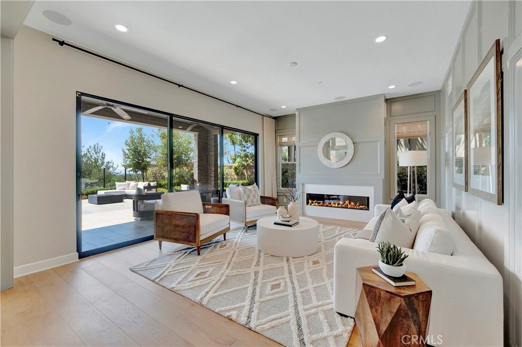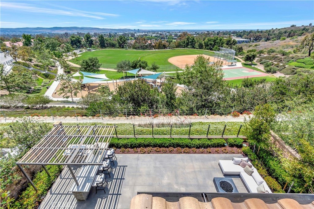 Luxury and sophistication await in this exquisite 4-bedroom, 6-bath model home, in the prestigious Teresina community of Lake Forest. Boasting 4,146 square feet, this plan 3X model offers stunning panoramic views and superior upgrades. Enter through the grand entryway with vaulted ceilings, setting the tone for unparalleled luxury. Upgraded hardwood flooring and LED lighting flow seamlessly throughout the home. The gourmet kitchen features granite and quartz countertops, full-height tile backsplash, and top-of-the-line GE Monogram appliances complete with a spacious pantry with built-in open storage shelving. The great room showcases elegant wall paneling, a limestone fireplace, and stacking sliding doors that open to reveal breathtaking views. The outdoor room, complete with ceiling fans and tongue and groove ceiling detail, is the perfect setting for outdoor dining and relaxation. The upscale backyard features a pergola with a built-in BBQ island, perfect for hosting unforgettable gatherings. The thoughtfully designed first floor also includes an open-layout dining room, powder room with a limestone countertop, a den with built-in lighted cabinets and shelving, and a convenient bedroom with an attached bathroom featuring a quartz countertop. The second floor is home to the luxurious primary suite, offering sweeping views and a private covered terrace with equally captivating vistas. The primary linen suite features a quartzite countertop, tile backsplash, and a GE Monogram wine chiller. Indulge in the primary bathroom, complete with quartzite countertops, floor-to-ceiling shower tiling, and a soothing rain can shower head. A large walk-in closet provides ample storage. The laundry room boasts white shaker cabinets and quartz countertops. The versatile loft space includes a wall-mounted TV pre-wire and charming tongue and groove wall detail. Two additional bedrooms, each with an attached upgraded bathroom, complete the second level. Ascend to the third story bonus room featuring a convenient kitchenette, white shaker cabinets, a granite countertop with waterfall edge, and a powder room. From here, Step out onto the incredible roof terrace, where you will be mesmerized by unbelievable views. The 2 car garage offers a tank less water heater, epoxy flooring, and conduit for EV charging. This model home is a true testament to luxury living, offering an unparalleled blend of sophisticated design, premium upgrades, and breathtaking views.