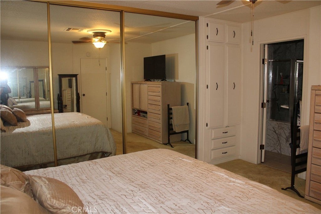 REDUCED TO SELL!!! Triple-wide manufactured home approximately 1,746 sq. ft. (buyer to verify). Recently remodeled master bathroom. Newer double-pane windows in the living room and master bedroom. Features wood shutters in the living and family rooms. Spacious family room includes a bar. The kitchen offers a breakfast bar, ample pantry space, and a large additional closet between the kitchen and laundry area for extra storage. The home includes a large linen closet in the primary bathroom. Flooring includes carpet in the living room and bedrooms, neutral vinyl in the family room, and laminate in the kitchen. Composition roof is approximately 9 years old. Exterior highlights include a front porch, back patio, block steps in front and back, and two storage sheds. Located in the beautiful and highly sought after Twin Oaks Park in La Verne.