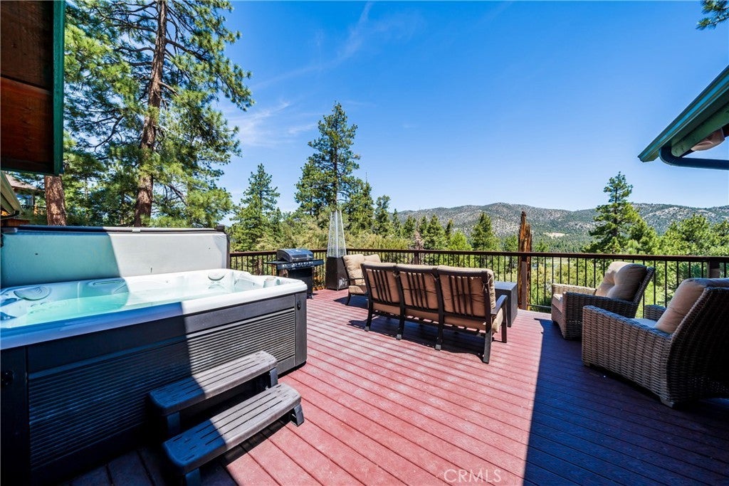 Nestled in one of Big Bear Lake's most prestigious neighborhoods "Castle Glen Estates", this charming 3 bedroom 3.5 bath home is perfect for a mountain getaway and family retreat! This home has large dual master bedrooms, a beautiful Family room (den) and a separate laundry room. Picturesque mountain and lake views with a sparkling jacuzzi for relaxing and taking in the fresh air. The property backs up to an open preserve. The home has many recent upgrades including new flooring, all new interior doors and a brand new Air Conditioning system for year round comfort. The Great Room has vaulted Beamed ceilings and a custom river rock fireplace. The attached 3 car garage and huge drive way make for plenty of parking for hosting gatherings.