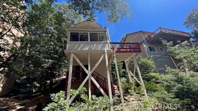 Priced to Sell! Gambrel Style cabin offers 3 bedrooms and 2 baths on 3 floors, 1 bath on main floor with kitchen, dinning room, wood burning stove with sitting area with its own private deck. Downstairs offers a family and 1 more bath and a wood burning stove with a sleeping area and access to back yard. This cabin offers a slice of paradise amidst breathtaking surroundings and located on the quite side of the valley, cabin is a dream come true for outdoor enthusiasts and nature lovers alike, for those who crave winter adventures, this idyllic town is also in close proximity to Snow Valley Ski Resort making it a perfect haven for snow boarders and skiers. the floor plan I s versatile it either had 3 bedroom or 2 bedrooms and a den/ game room with a bathroom on 2 levels. Curb appeal with mature pine and fir trees, the setting is private with 2 entertaining decks for those warm summer nights in Green Valley Lake, parking structure is made with block and cement to last a lifetime.