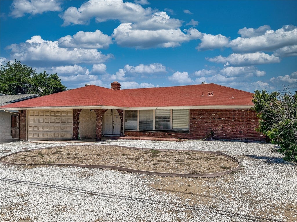 This unique home is in the heart of Hemet. offering 4 bedrooms 2 bath. The Kitchen is spacious with granite counters lots of cabinets. Primary bedroom is on the opposite side of the other bedrooms giving privacy. There is a brick fireplace in the dining area. There is laminate wood flooring throughout the home. The home is on a lot of over 10,000 square feet. Plenty of room for entertainment. There are approximately 30 solar panels that will be paid off at the close of escrow. This home has lots of potential.