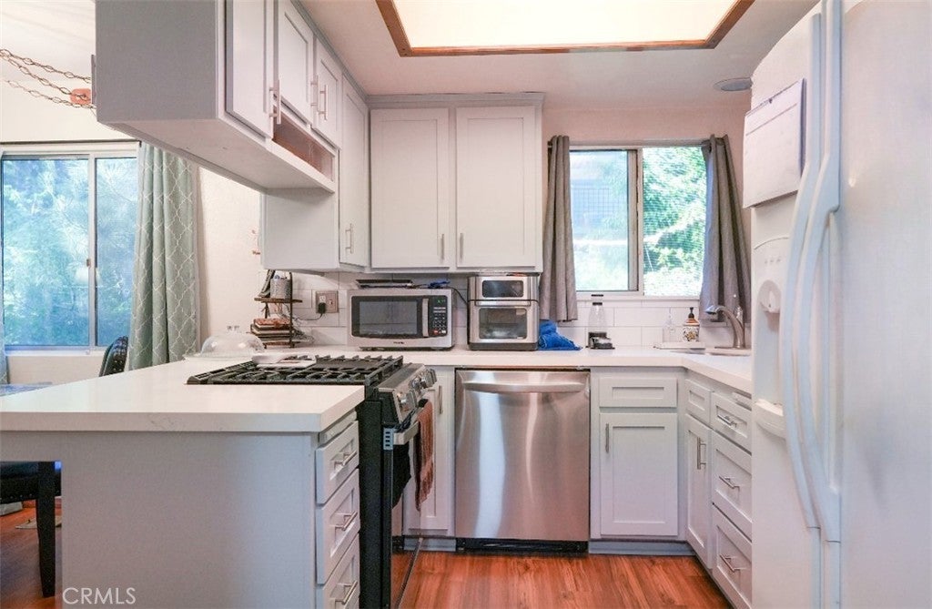 Charming Mountain Retreat – 2-Bed, 1.5-Bath with Modern Upgrades & Serene Setting Escape to the peaceful beauty of the San Bernardino Mountains with this clean and quiet 2-bedroom, 1.5-bath home—perfect as a full-time residence, weekend getaway, or vacation rental. Nestled on a private, plowed road, this level-entry home offers easy year-round access and is just minutes from Snow Summit and Lake Arrowhead. Step inside to find a beautifully updated interior featuring a modern kitchen with new appliances, a convenient wash room with new washer and dryer, and a cozy layout designed for comfort and relaxation. Enjoy thoughtful features throughout, including built-in wooden dresser drawers, a barn-door walk-in closet, and a luxurious soaking tub to unwind after a long day. The home also includes 4 exterior security cameras for added peace of mind. Relax or entertain outdoors on the newly built front and back decks, surrounded by towering pines and tranquil mountain air. This home is part of a close-knit, long-standing neighborhood, offering both privacy and community. Looking for more space? A 30 x 100 lot is also available at a special discounted price when purchased with this home. Great opportunity to expand or create your own outdoor vision—ask the agent for details! Whether you’re looking for a personal mountain hideaway or a smart investment, this home is ready to welcome you.