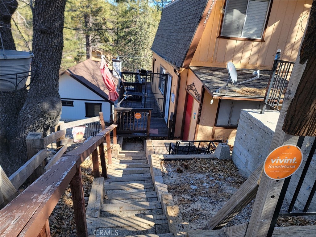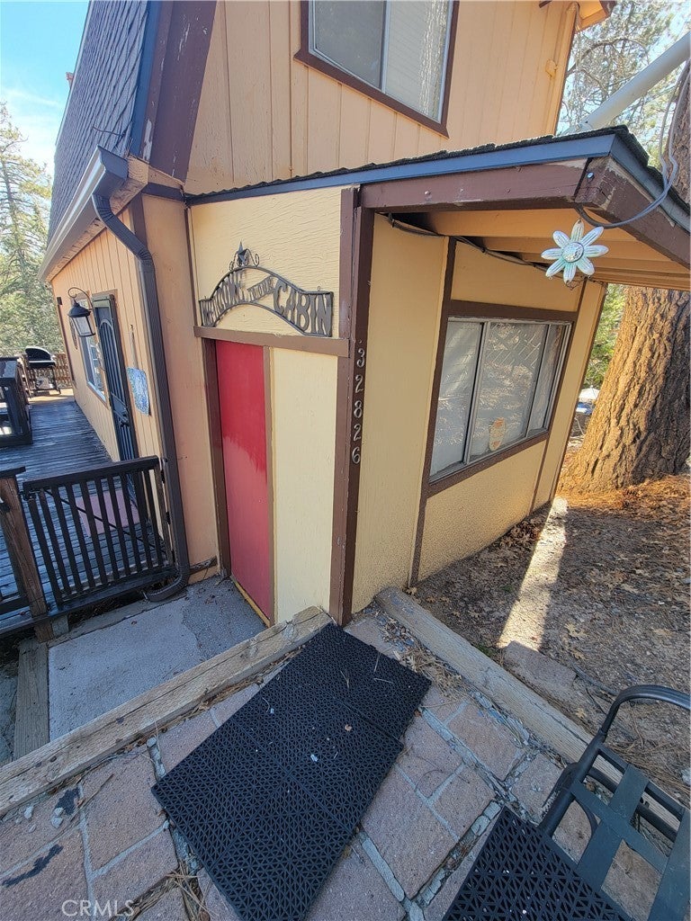 Cozy cabin in Arrowbear. Maybe an Air BNB?? Three bedroom with 2.5 baths. The main level has 2 bedrooms with 1.5 bathrooms. There is an outside access to lower level with one bedroom with 1 bathroom. Fireplace on the main level. Storage area in front. Parking area in front. Central heat. Washer/Dryer included in the basement adjacent the lower bedroom area. Has a private road entry. The cabin furniture is negotiable. Just behind the Deep Creek Drive in.