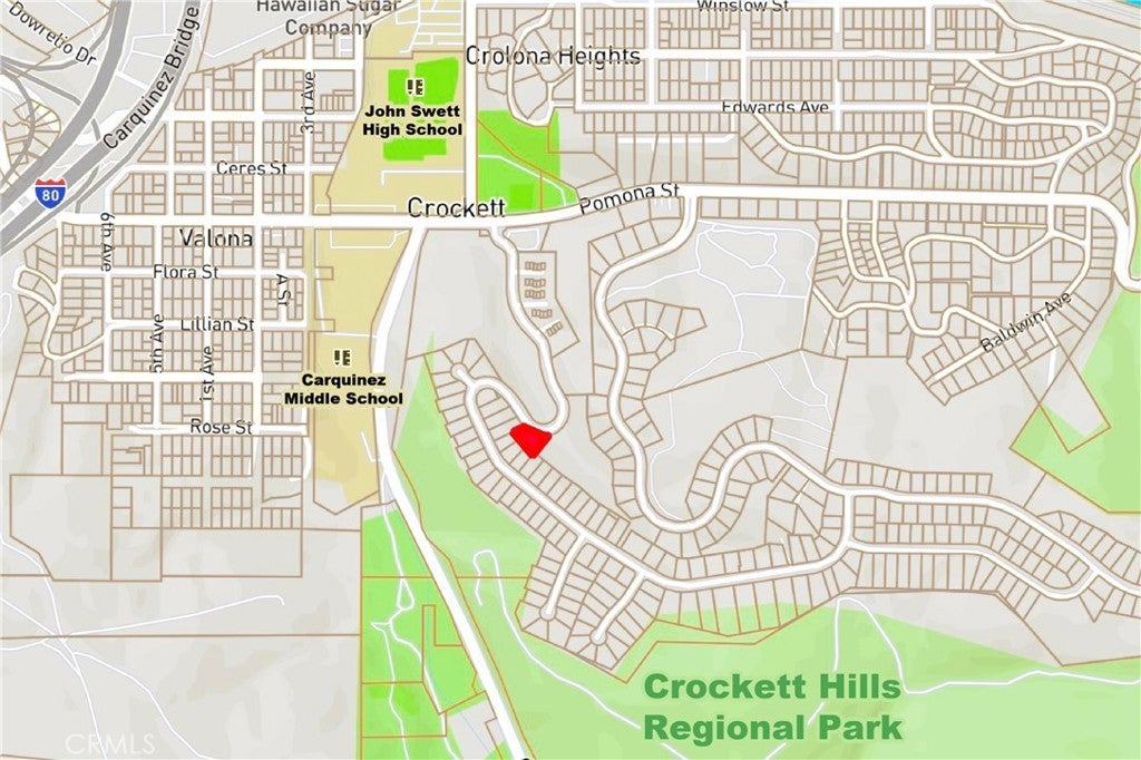 Desirable location adjacent to open space with views of rolling hills. Located a few blocks from the Crocket tennis courts, pool, John Swett High School, and Carquinez Middle School. Also near Crocket Hills Regional Park, where you will find miles of trails. Gently sloped 0.23 acre. Utilities are in the area. Zoning is residential. The seller is an investor, so the seller and agent have not researched building. There are no plans or reports. Buyers will want to direct any questions about building to the Contra Costa County Planning Department. The lot stretches from the left side of the small rock retaining wall to just before the wood fence on the right. Boundaries in the aerial map are only approximate. Excellent price for this great neighborhood!