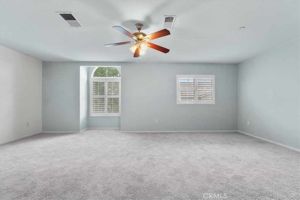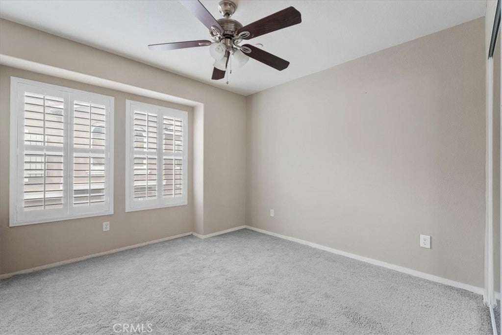 Welcome to Resort-Style Living in the Gated Rosabella/Shady Trail Community! As you enter you will be greeted by the open concept spacious family room that consists of recessed lighting, a cozy fireplace, the great kitchen featuring an extensive breakfast bar, stainless steel appliances, walk-in pantry, and direct access to the 2-car garage. Before proceeding upstairs, you have a conveniently located powder room. The upstairs offers fresh carpet throughout the hall and bedrooms, a walk-in closet for one of the bedrooms, bathrooms adjacent to one another, laundry room, a room before the primary bedroom that could be utilized as a lounge area, and lastly, the large primary bedroom retreat. It offers spacious living including dual sinks, light fixtures, and a walk-in closet. Other notable features include plantation shutters throughout and ceiling fans in all bedrooms. Relax outside on your welcoming patio with light upkeeping to the exterior covered by the association. This home offers a low-maintenance lifestyle with access to premium amenities, including: 24-hour gated entry, Multiple pools and spas, Very Well Equipped Fitness center, tennis & basketball courts, playgrounds, BBQ areas, greenbelts, Movie theatre, game/hobby room, library, billiards room, and Community-hosted events throughout the year. Located in proximity to Fontana Park & Aquatic Center, Parks, Sierra Lakes Golf Club, shopping, dining, easy access to freeways and so much more! Schedule your showing today before it is gone!