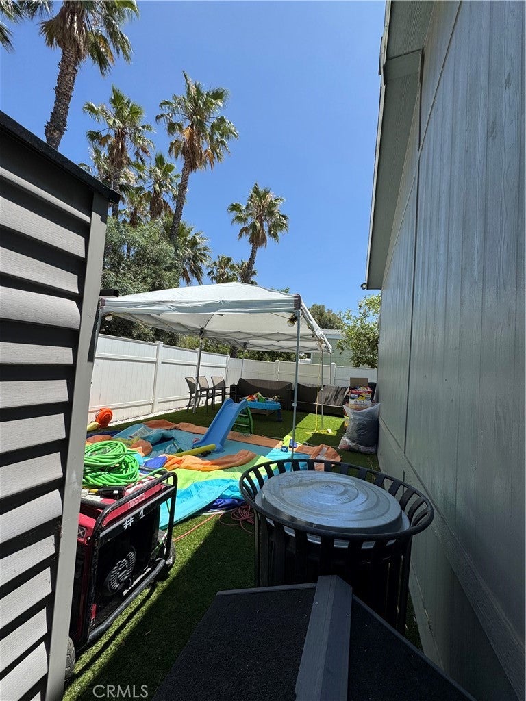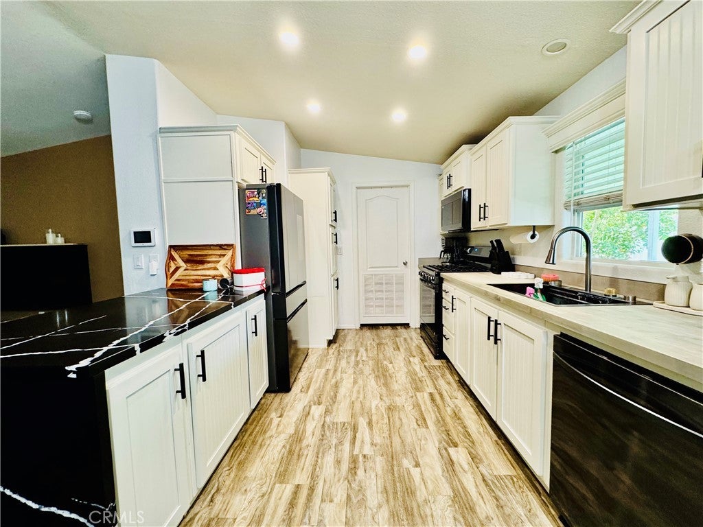 Welcome to Cadena Creek Mobile Home Park, a community that welcomes people of all ages. Here, you will find a recently remodeled manufactured home with an appealing, spacious open floor plan featuring three bedrooms and two baths. The living room and dining rooms have high ceilings, which give the home an airy, welcoming vibe. The living room features a modern gas-lit fireplace. The dining area is conveniently located off the living room with easy access to the kitchen. The galley kitchen is well-appointed, utilizing every space to the best advantage. The large primary room offers plenty of space and a nice-sized closet, as well as an ensuite private bathroom. The secondary rooms are spacious as well. You will enjoy the convenience of having an indoor laundry area. The backyard has a fenced-in area that can be used as a children's play area or converted into your own space to relax while enjoying quiet summer evenings. The Cadena Creek community offers desirable amenities, such as clubhouse with banquet facilities, a community pool with a spa, a community playground, and a poolside picnic area. The park offers boat/RV and off-street parking. Cadena Creek Park is in close proximity to freeways, eateries, shopping, schools, and more.