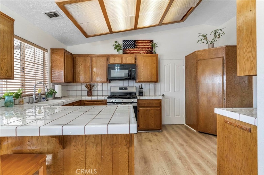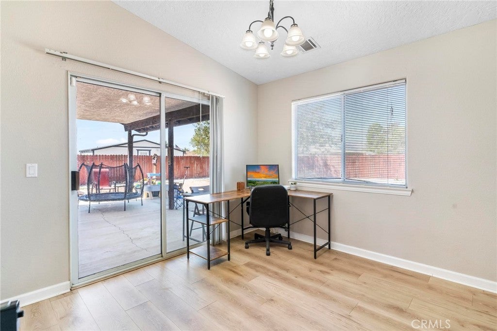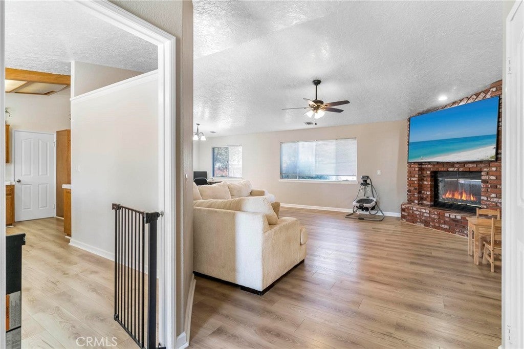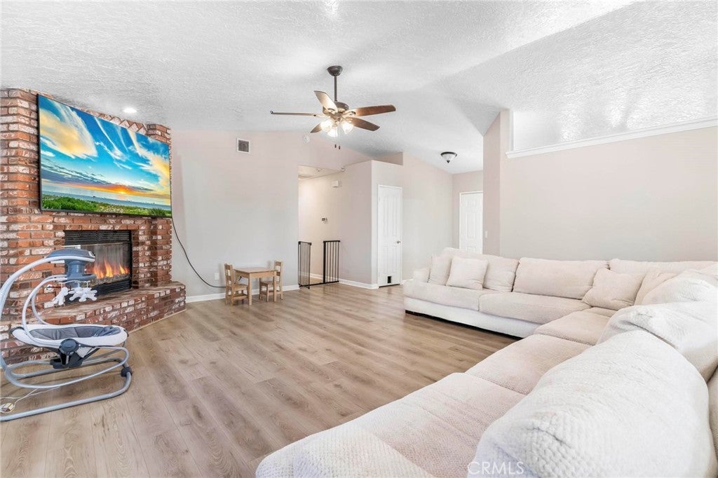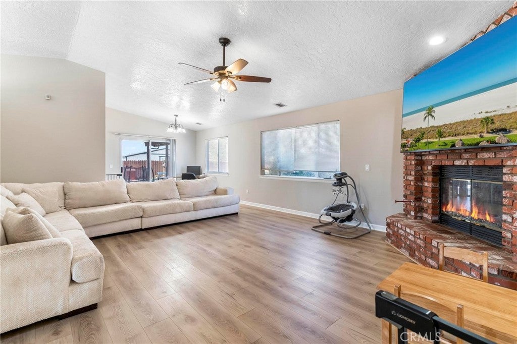 Welcome to this beautifully upgraded, move-in ready single-story home located in a quiet, well-established neighborhood in Apple Valley. This spacious home offers 3 bedrooms, 2 bathrooms, and 1,756 sq.ft. of living space, perfect for comfortable everyday living. Enjoy all-new flooring throughout the entire home, fresh interior paint, and a brand-new roof for peace of mind. Huge bonus is the energy-efficient solar system to eliminate your monthly Edison bill. The inviting kitchen features ample cabinetry, a pantry, tile countertops, a breakfast bar, and a cozy dining nook. The family room includes a charming brick fireplace and opens to the dining area with sliding glass doors that lead to a covered patio, ideal for relaxing or entertaining. The large primary suite offers a double sink vanity, a soaking tub, separate shower, and a walk-in closet. The home also features an indoor laundry room with a gas dryer hookup, an attached 2-car garage, RV parking, a fully fenced backyard, and a storage shed. Conveniently located near shopping centers, schools, parks, and restaurants. This is a must-see home that offers comfort, convenience, and style in one turnkey package.