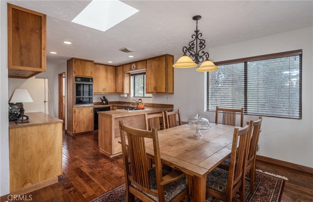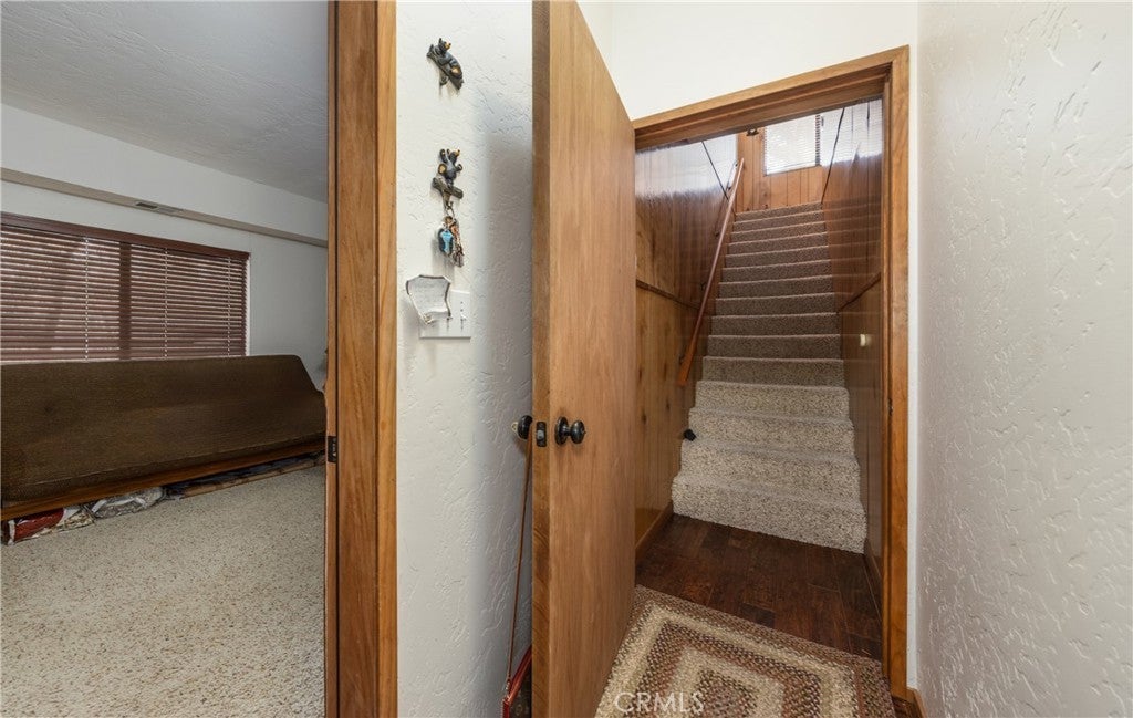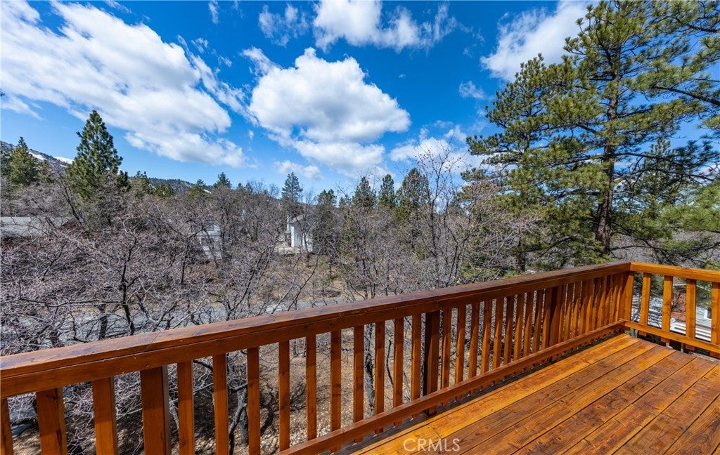 Welcome to 1772 Columbine Drive! Situated at the top of the prestigious Moonridge Mountain Estates. One of the highest elevated homes in the area providing you with spectacular mountain, ski resort and valley views!! Words do not do this home justice as you will need to schedule an appointment to view it for yourself!! This home was built in 1984 and features 2031 square feet of living space. It sits on an impressive 9598 square foot lot with gorgeous trees that surround the home bringing nature to your doorstep!! As you enter through the first floor entry, you will find a spacious Family Room and/or Bedroom and the adjoining room would be a great Game Room. This area good possibly permitted for an ADU conversion that would be a great short or long term rental with its own separate entry. As we make our way up to the second level you will find tow large bedrooms, one full bathroom and one 3/4 bathroom with the Laundry Area in one of the bathrooms. Both bedrooms have sliding glass doors to the outside where you will have a wrap around deck for you to enjoy your morning coffee or evening glass of wine. This is also a second entry point with a Mud Room. From here we can go up to the third level where you will fall in love with the open Living Room/Family Room. There is a custom built split level Wood Burning Stove. This unique piece not only accentuates the room but gives warmth on those cold snowy nights. The knotty pine ceilings and two skylights in this area bring nature indoors as wells as lots of natural light. The Kitchen and Dining Room boost hand rubbed cherry wood flooring and the classic wood cabinetry giving you that cozy mountain feel. There are two separate sliders to the outside deck with AHH inspiring views of bear Mountain, the ski run Geronimo at an elevation of 8800 feet as well as valley views, the crystal blue skies during the day and the milky way at night. This level also features a 1/2 bathroom for added convenience. Additional features include weatherized exterior decking and stairs. Central Heating and an upgraded Water Heater. Long driveway leads you to ample parking spaces for several vehicles including an RV and or Boat and a Storage Shed is included. This location gives you the space and tranquility yet it is just a few minutes away to all of Big Bear. Lets schedule a showing with your Realtor and I hope to see you in Escrow!! : )