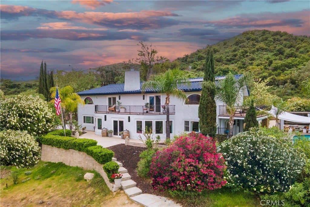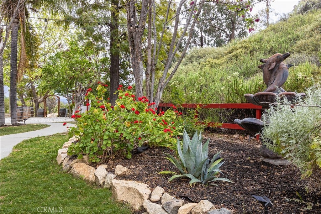 A fully remodeled luxury estate with instant equity! Offered below recent appraisal as the owners relocate out of state, this rare opportunity combines high-end improvements, income potential, and the glam farm lifestyle in one of Southern California’s most prestigious equestrian enclaves. Set on ~4 gated acres in the Santa Rosa Plateau foothills, this gated hilltop property offers panoramic views across four counties with unmatched convenience just 2 minutes from I-15, shopping, and dining. Every inch of this property has been thoughtfully renovated, fully modernized, and professionally styled to reflect a seamless fusion of modern farmhouse design with European country estate aesthetics. Known as a thriving mini-Highland cow attraction, the property features high-end livestock infrastructure, botanical grounds, a pool sanctuary, and sweeping city-to-mountain views from Los Angeles to San Diego. This established agritourism draw offers turn-key income potential with no HOA, no CC & Rs! Interior highlights include nearly 4,400 SF with 5 spacious bedrooms, 4+ bathrooms, dual primary suites, an entertainer’s lounge with a wine fridge, a panorama room to soak in the views, and an artist’s loft/office. The chef’s kitchen features natural quartz Calacatta countertops, dual dishwashers, dual ovens, a butler’s pantry, and seamless access to indoor and outdoor dining areas. A 450-foot cypress-lined driveway leads to resort-style amenities: a large pool with hot tub, shaded cabanas, outdoor bar, hot shower, several terrasses, manicured gardens with fountain, and multiple curated spaces designed for refined entertaining beneath mature trees. Equestrian and boutique livestock facilities include a commercially lighted dressage court, 246-foot arena, tack room with restroom, 2 mare motels, and thoughtfully designed enclosures. Additional highlights include an 11.2kW solar system, 20+ paved guest parking spots, and every surface fully renovated—making this estate move-in ready for those seeking privacy, prestige, and profit in one of California’s last hidden gems. Adjacent to the prestigious communities of La Cresta and Bear Creek Golf Club, this property is set within the sought-after Santa Rosa Addition and benefits from exclusive Wildomar R-R (Rural Residential) zoning—allowing a wide range of permitted uses, including livestock husbandry, nurseries, orchards, guest ranch operations, and a permanent farm stand (buyer to verify).