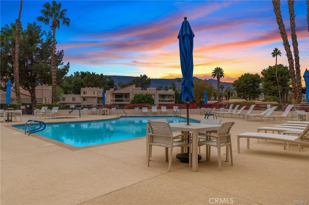 Experience the allure of Canyon Shore, a gated community that combines resort-style living with serene lagoons, fountains, and picturesque walking trails. This beautifully maintained 2-bedroom, 2-bath lower-level condo features a well-kept kitchen with a breakfast bar, a spacious dining area, and a large living room perfect for entertaining or relaxing. Step out onto the patio to find one of the community’s 5 pools, perfectly positioned for both convenience and privacy. Retreat to the spacious master suite and enjoy access to the clubhouse and gym. The community offers 7 tennis courts (4 lighted), a Pickleball court, 5 pools, 7 spas, and two dry saunas. Ideally located near Cathedral City’s entertainment district, restaurants, and a casino, this home includes one covered parking spot, ample guest parking, and an HOA that covers water, trash, and maintenance. Don’t miss your chance to own a slice of paradise!