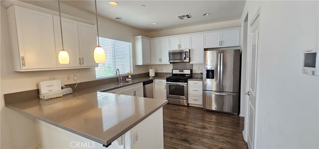This beautiful Home Offers 5 bedrooms and 3 bathrooms, making it an ideal home for families or those seeking extra space. Located at 11818 Greenbrier Ln in Grand Terrace, this property features a modern kitchen with stainless steel appliances, quartz countertops, white cabinetry, and pendant lighting over a spacious breakfast bar. The open-concept design flows into the living area with wood-style flooring, recessed lighting, and large windows that allow for plenty of natural light. Sliding glass doors open to a private outdoor space, perfect for relaxing or entertaining. The home is also equipped with solar panels, two Tesla batteries, and an EV car charger, providing energy efficiency and convenience for electric vehicle owners. With its size, layout, and prime location near schools, shopping, dining, and freeway access, this home provides both comfort and modern living.