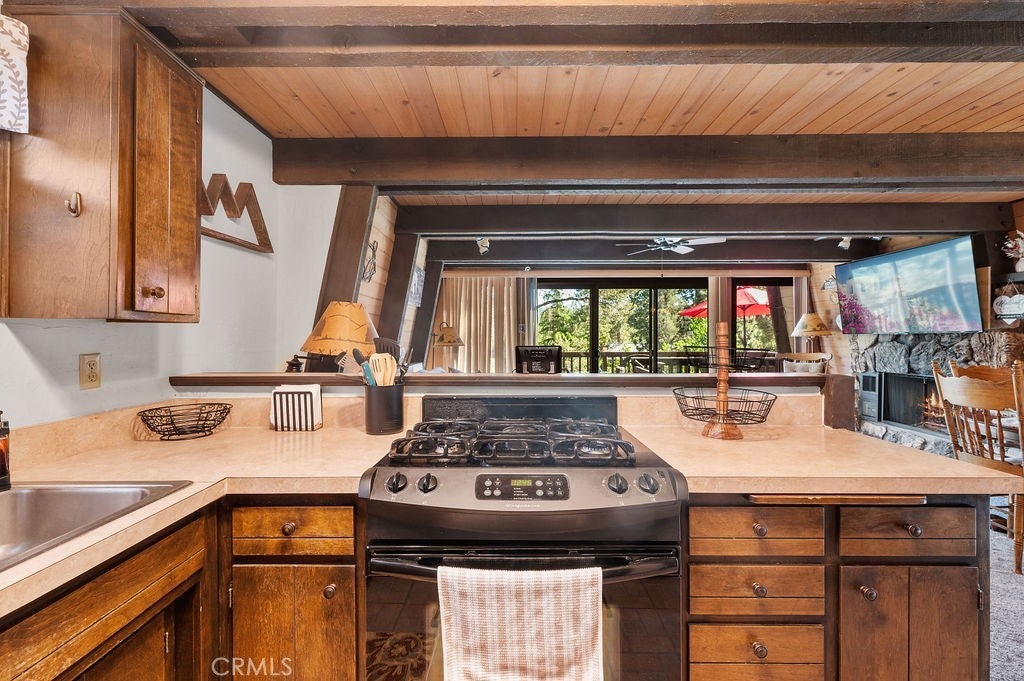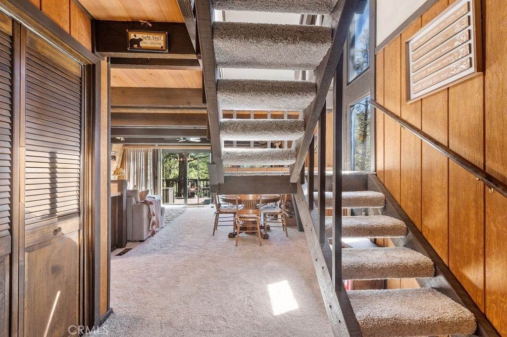 Beamed Ceilings, Breakfast Bar, Balcony, Ceiling Fan(s), Cathedral Ceiling(s), Separate/Formal Dining Room, Furnished, Living Room Deck Attached, Open Floorplan, Bedroom on Main Level, Primary Suite, Walk-In Closet(s)