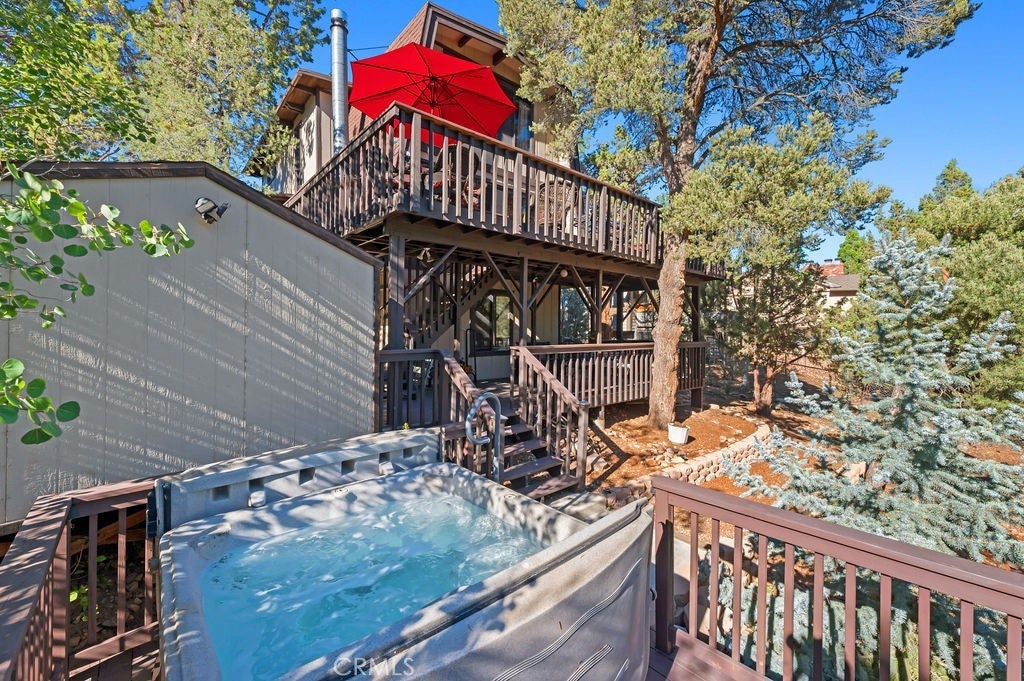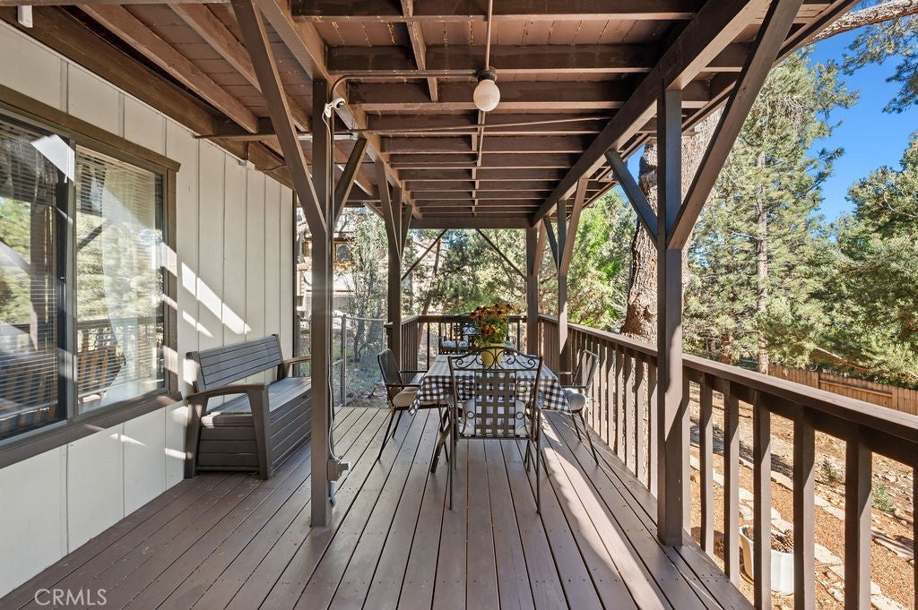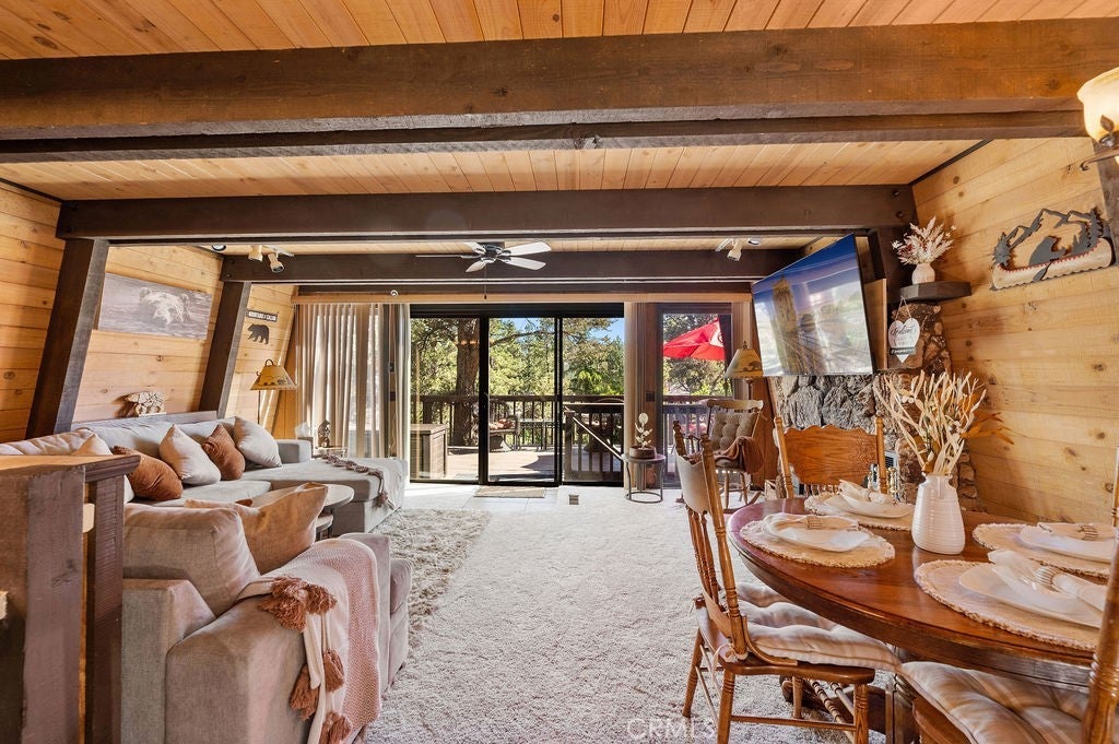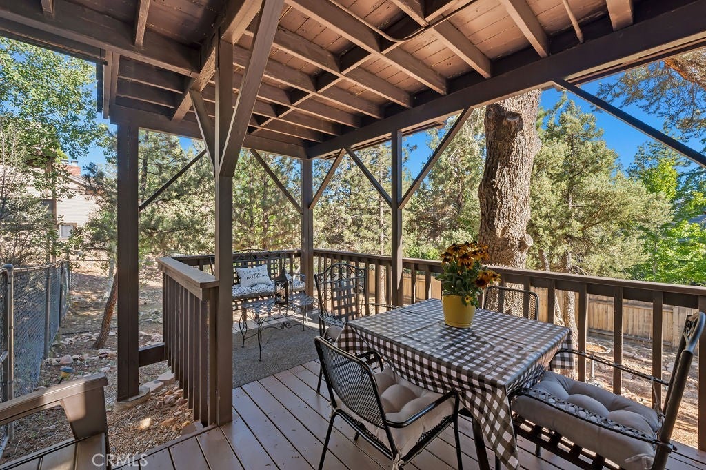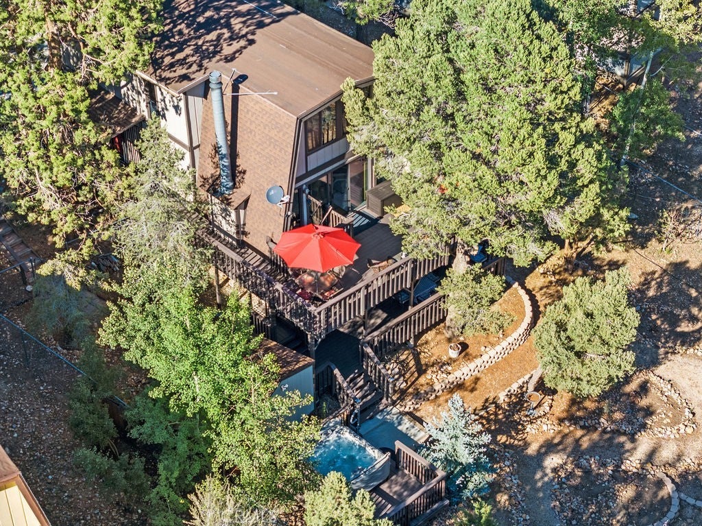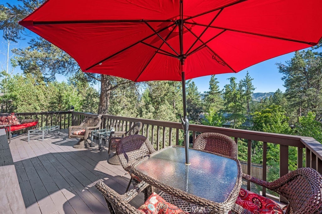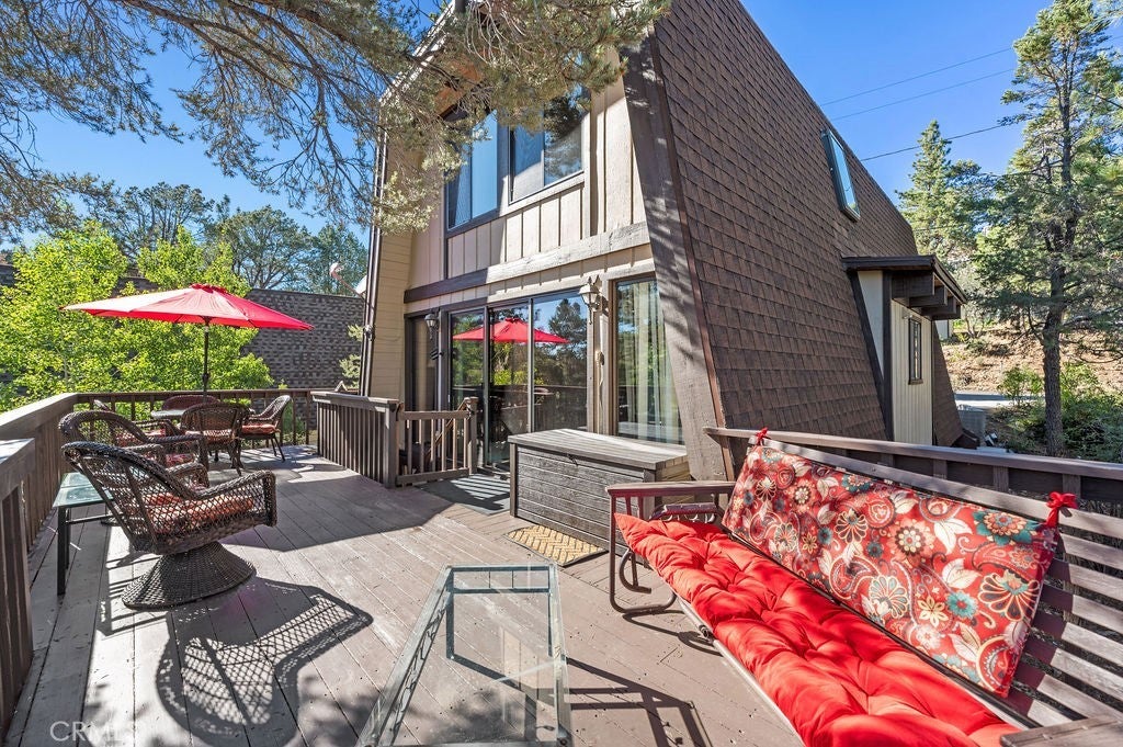 Panamint Mountain Drive is located in the highly sought-after community of Whispering Forest on an incredible interior lot with serene views of the mountains, slopes, and majestic surroundings. This charming home offers 1,636 sq. ft. of very comfortable living space with 4 bedrooms and 2.5 bathrooms, an inviting family room, and a dining room, along with an absolutely adorable kitchen. In addition, the property is currently functioning as a successful Airbnb! Some of the most amazing features inside this home include open beam ceilings, wood paneling, stamped carpet throughout the main living space and bedrooms, an expansive sliding glass door, and a stone fireplace in the family room. The master suite offers a great walk-in closet, plus newer carpet and paint. Panamint Mountain boasts a spacious multi-level wraparound deck extending from the front door to the back sliders, perfect for entertaining or soaking in the mountain views. The grounds are truly fantastic, offering a private spa with a separate deck area, a well-maintained shed, retaining planters, and plenty of mature trees for that true mountain feel. This property can be sold furnished, making it ready for immediate enjoyment—whether you’re looking for a weekend family getaway, a permanent full-time residence, or an income-producing Airbnb. This is a fantastic home in an incredible location!