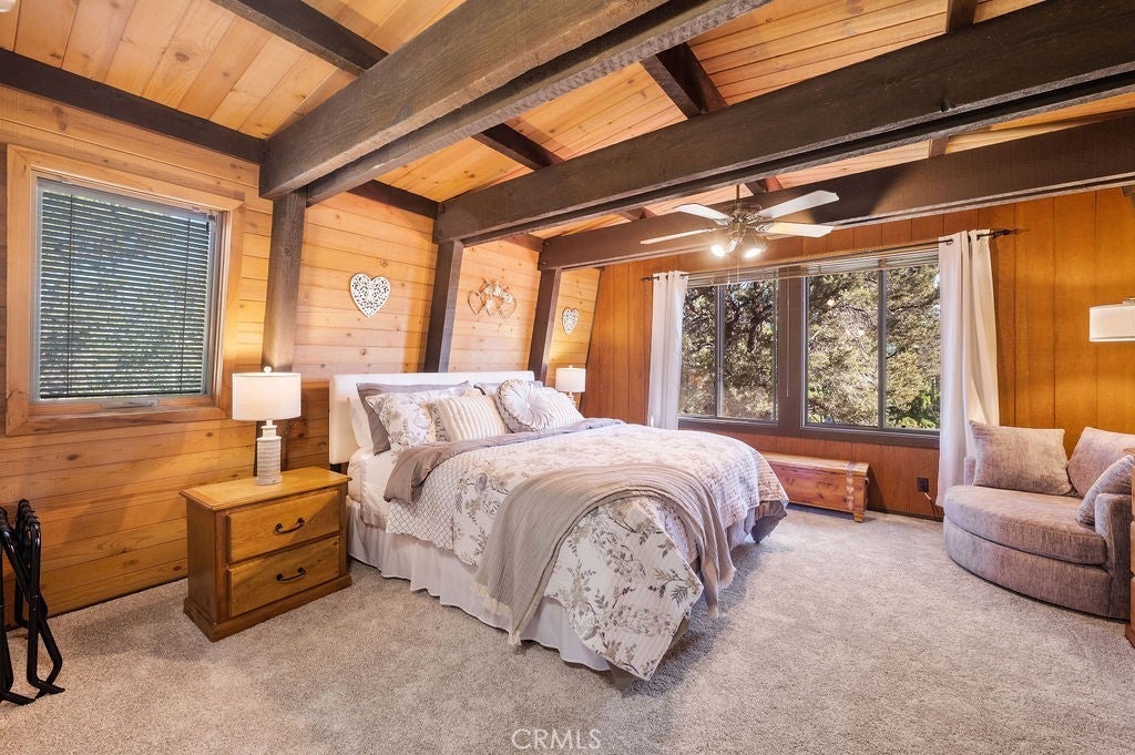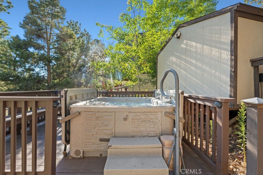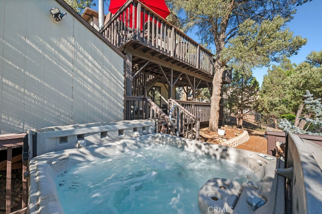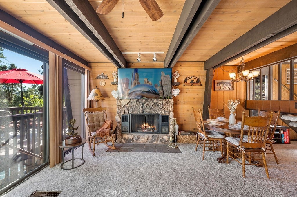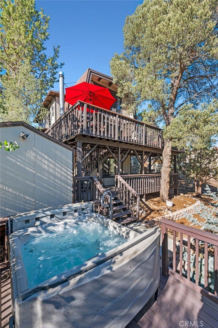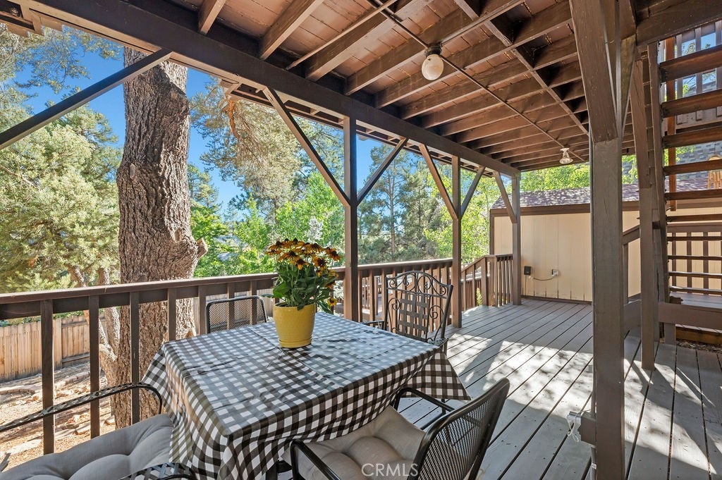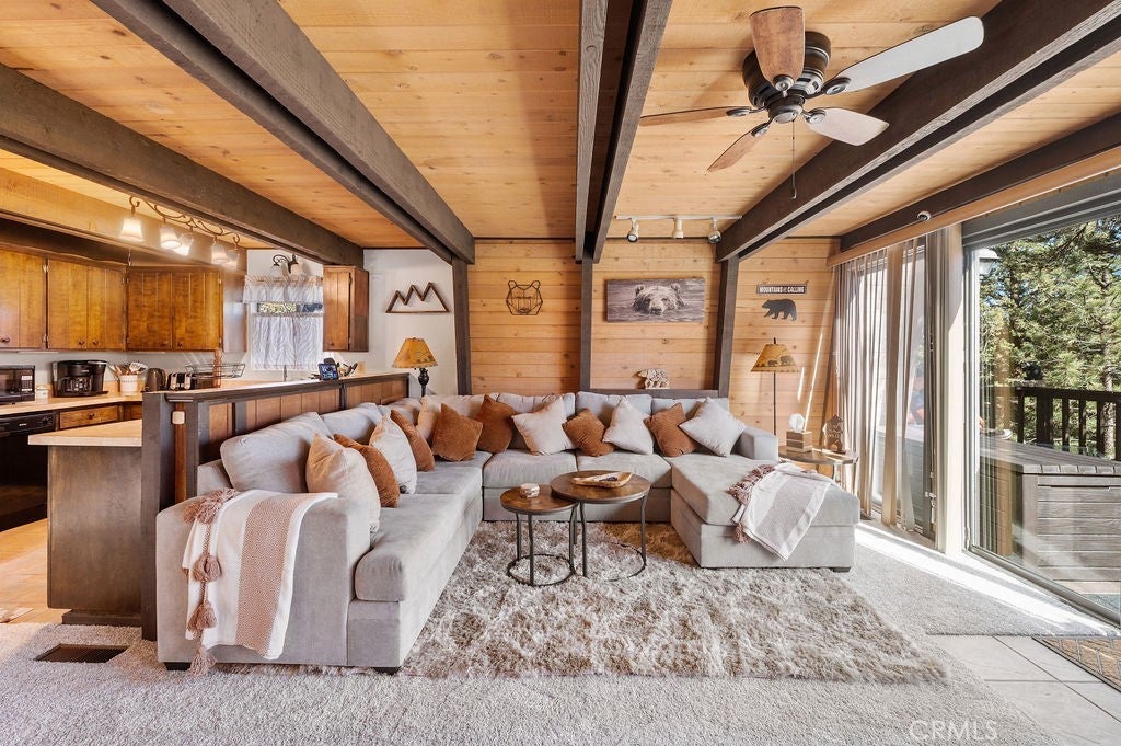 Panamint Mountain Drive is located in the highly sought-after community of Whispering Forest on an incredible interior lot with serene views of the mountains, slopes, and majestic surroundings. This charming home offers 1,636 sq. ft. of very comfortable living space with 4 bedrooms and 2.5 bathrooms, an inviting family room, and a dining room, along with an absolutely adorable kitchen. In addition, the property is currently functioning as a successful Airbnb! Some of the most amazing features inside this home include open beam ceilings, wood paneling, stamped carpet throughout the main living space and bedrooms, an expansive sliding glass door, and a stone fireplace in the family room. The master suite offers a great walk-in closet, plus newer carpet and paint. Panamint Mountain boasts a spacious multi-level wraparound deck extending from the front door to the back sliders, perfect for entertaining or soaking in the mountain views. The grounds are truly fantastic, offering a private spa with a separate deck area, a well-maintained shed, retaining planters, and plenty of mature trees for that true mountain feel. This property can be sold furnished, making it ready for immediate enjoyment—whether you’re looking for a weekend family getaway, a permanent full-time residence, or an income-producing Airbnb. This is a fantastic home in an incredible location!