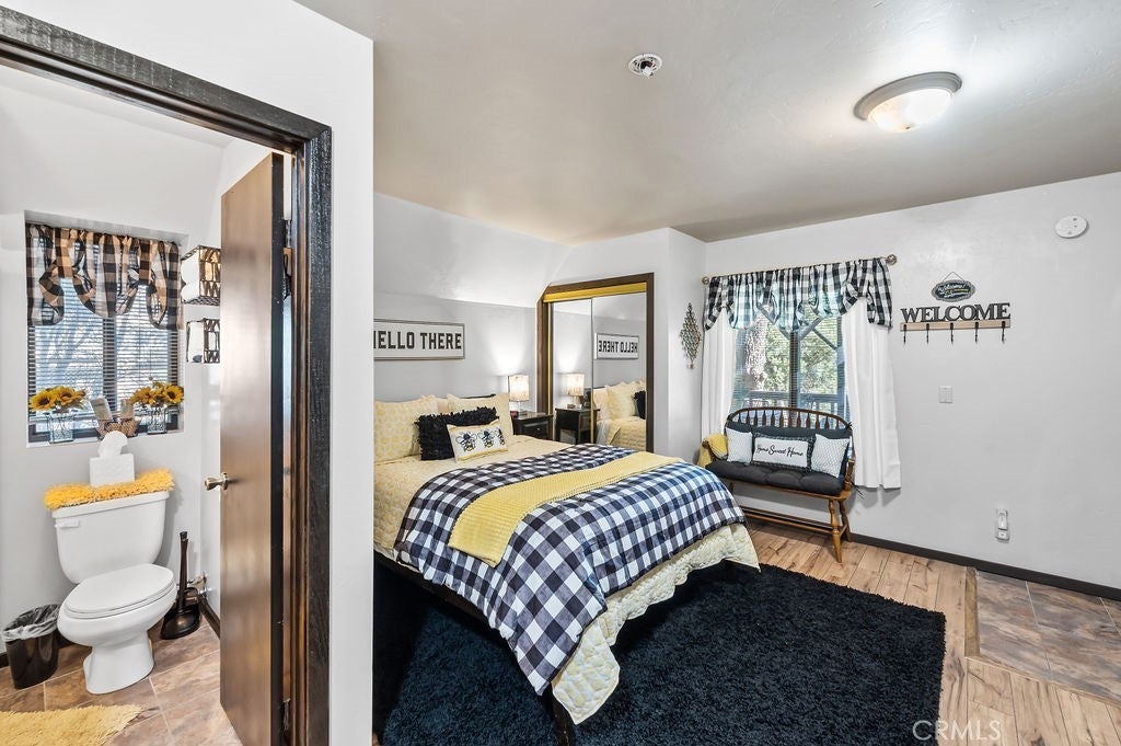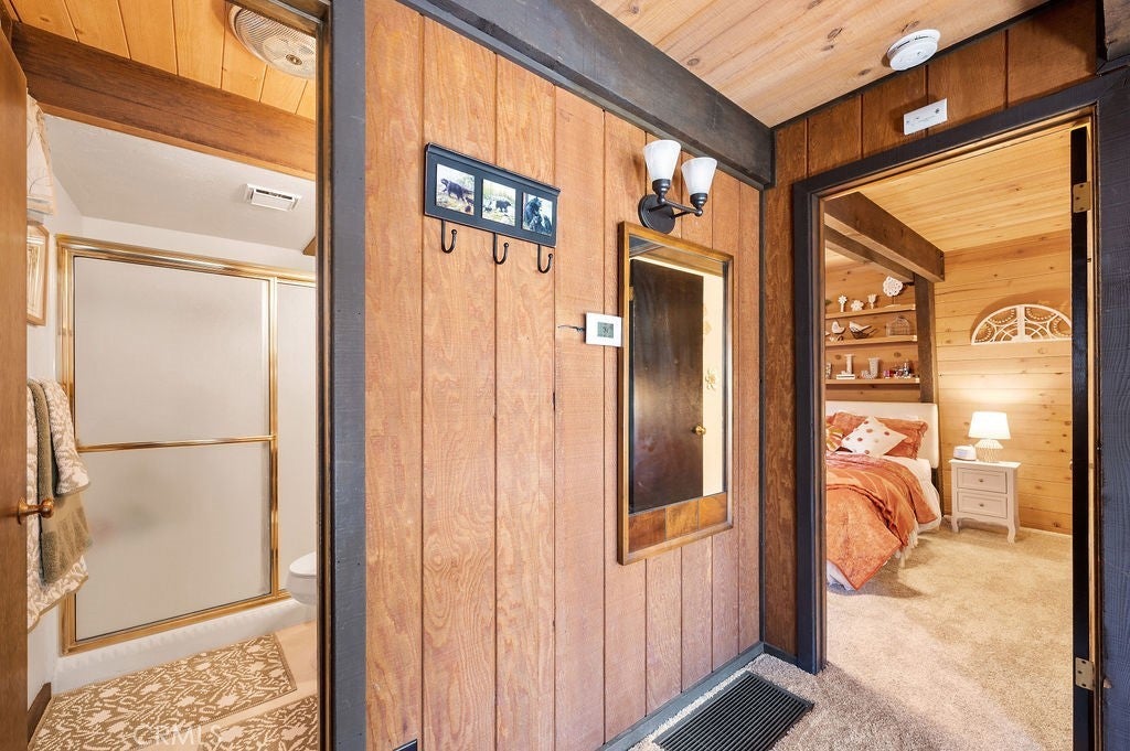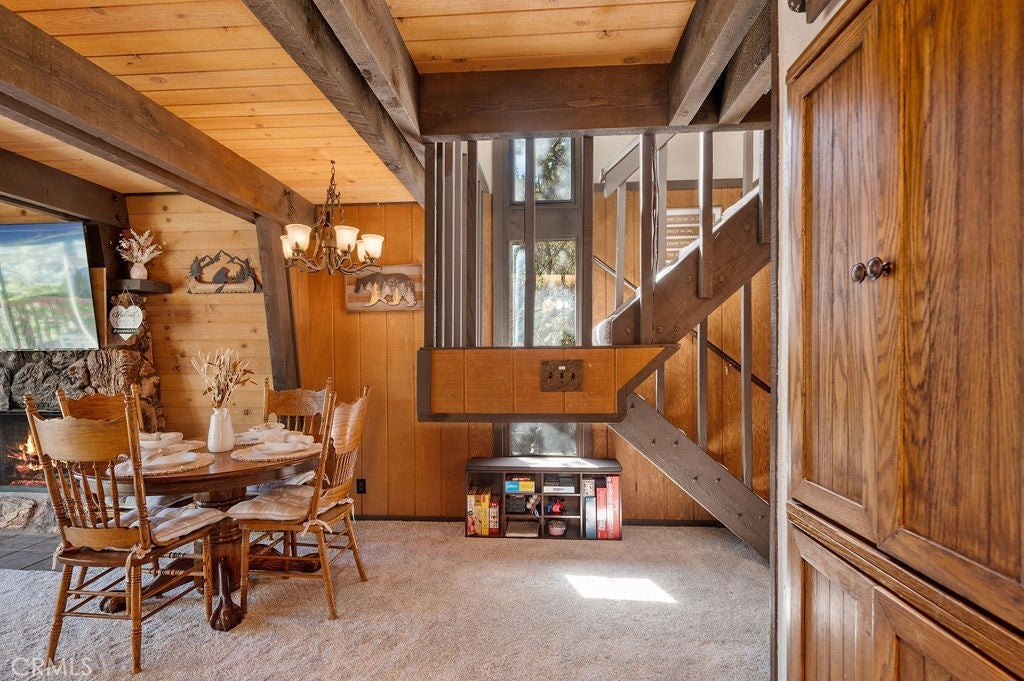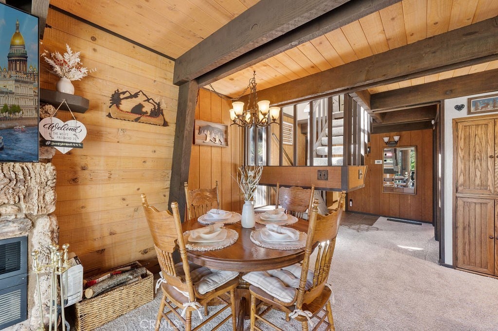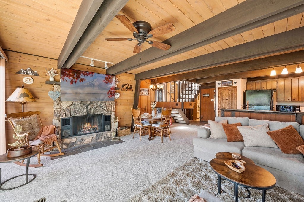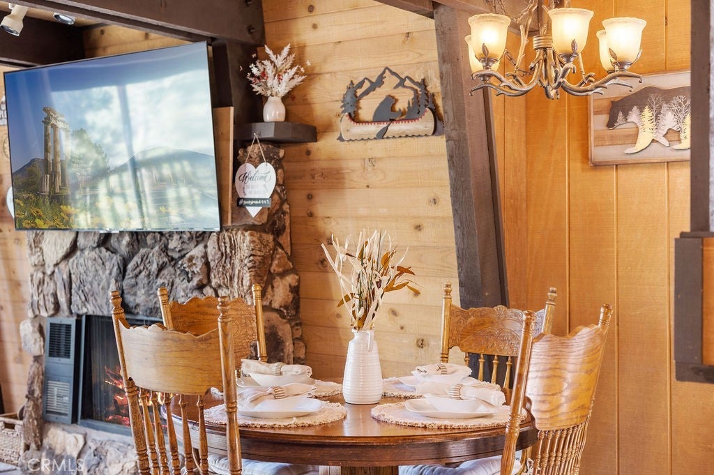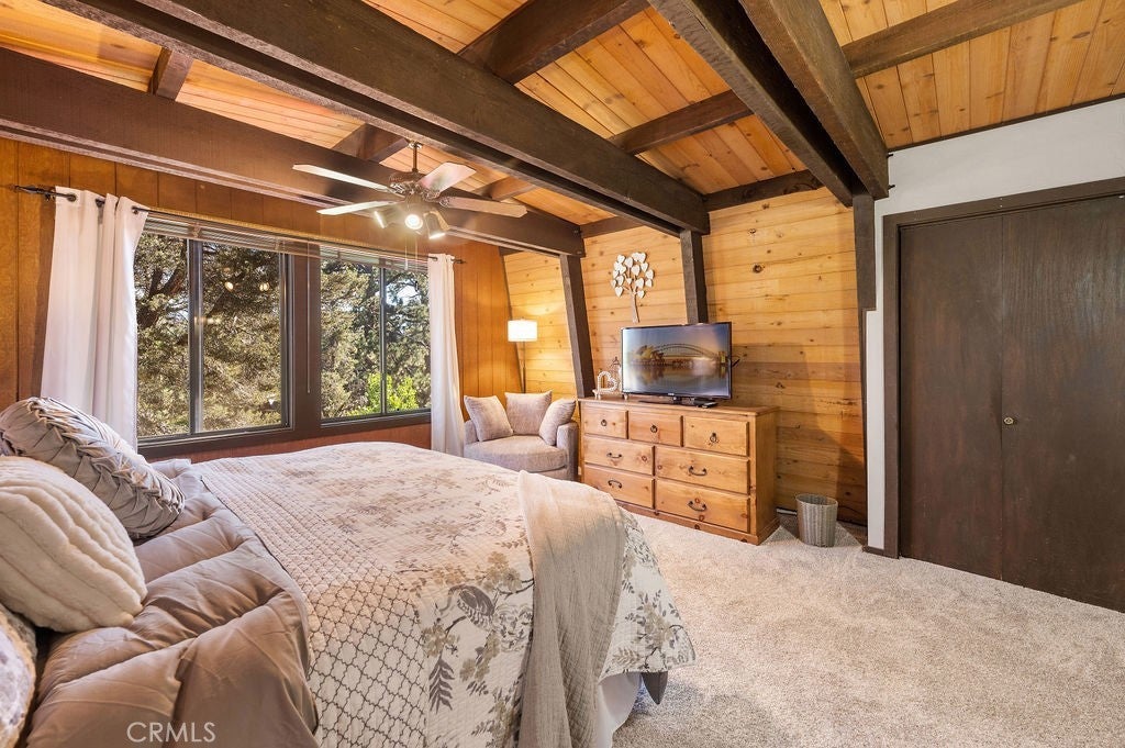 Panamint Mountain Drive is located in the highly sought-after community of Whispering Forest on an incredible interior lot with serene views of the mountains, slopes, and majestic surroundings. This charming home offers 1,636 sq. ft. of very comfortable living space with 4 bedrooms and 2.5 bathrooms, an inviting family room, and a dining room, along with an absolutely adorable kitchen. In addition, the property is currently functioning as a successful Airbnb! Some of the most amazing features inside this home include open beam ceilings, wood paneling, stamped carpet throughout the main living space and bedrooms, an expansive sliding glass door, and a stone fireplace in the family room. The master suite offers a great walk-in closet, plus newer carpet and paint. Panamint Mountain boasts a spacious multi-level wraparound deck extending from the front door to the back sliders, perfect for entertaining or soaking in the mountain views. The grounds are truly fantastic, offering a private spa with a separate deck area, a well-maintained shed, retaining planters, and plenty of mature trees for that true mountain feel. This property can be sold furnished, making it ready for immediate enjoyment—whether you’re looking for a weekend family getaway, a permanent full-time residence, or an income-producing Airbnb. This is a fantastic home in an incredible location!
