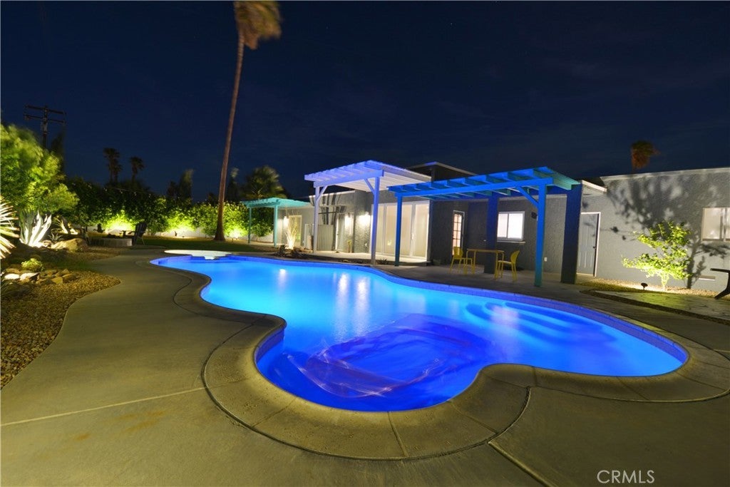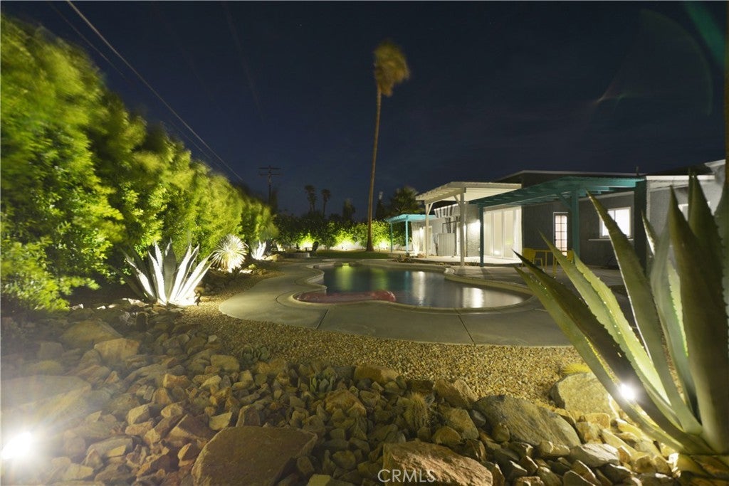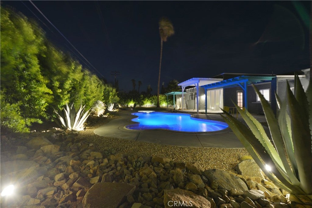 Available February 4th 2026 and after that date. Resort Style furnished home. Imagine Living like its a vacation in a full time 12 month rental!! Or rent 30 days at a time at a higher rate. Perfect Mid Century Renovated and designed Fully Furnished Vacation Home in Desirable Desert Park Estates. Backyard Paradise Professionally designed and executed landscape with full privacy Ficus, cactus rock and artificial grass. Home has been host to private Weddings and many family vacations. Fully lit front and back Led landscape lights. Beautiful custom pool and Spa with full automation of all controls. The inside is perfection designed and executed to maximize a minimalist modern style with a seamless transition to outdoor living. Complete Wall of Doors 9 x 12 opens seamlessly to make the living room and pool/deck area one complete space. The living room opens to an unobstructed view of the San Jacinto Mountains with privacy hedges for a completely private back yard. Large bedrooms and beautiful custom solid surface floors.