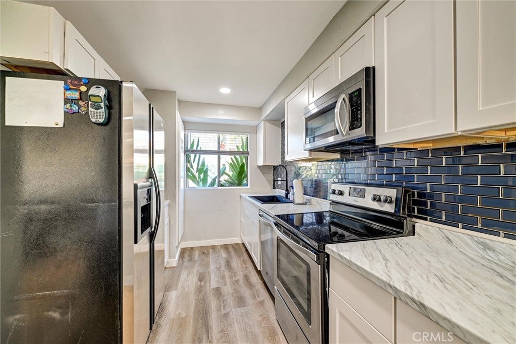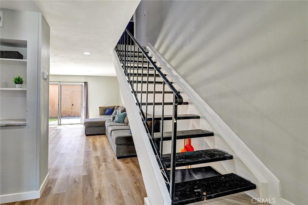 PRICE REDUCTION!! Charming upgraded townhome in a convenient location with low taxes! This home offers 2 bedrooms and 1.5 bathrooms. Completely turnkey with vinyl flooring throughout, updated kitchen and bathrooms. Cozy patio area with individual room for washer & dryer. Garage attached to patio for convenience and privacy. New fencing, newer HVAC system, and redone balcony upstairs. This is such a perfect home for first time buyers or even investors! It is located close to schools, shopping, and the freeway. Complex offers a swimming pool & spa, gym, and clubhouse and HOA covers lawn maintenance, pest control, water, trash, and sewer!