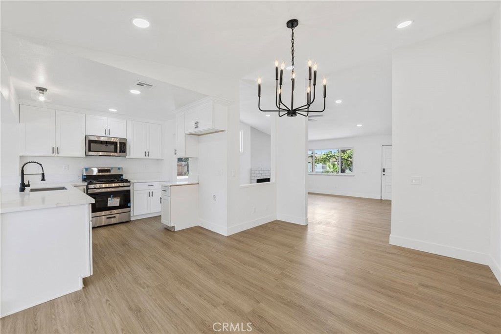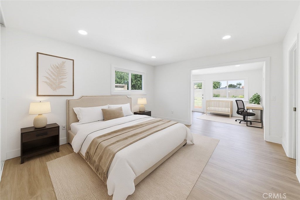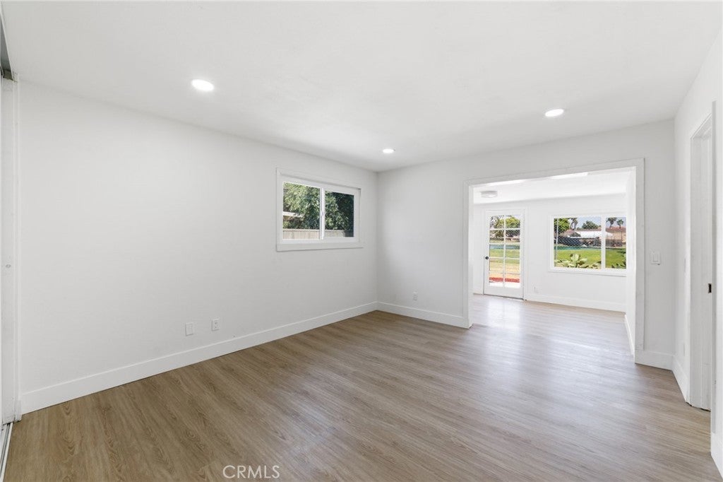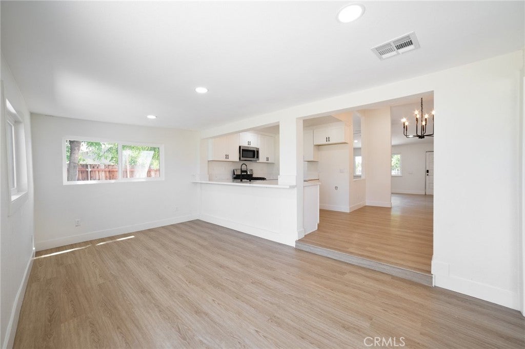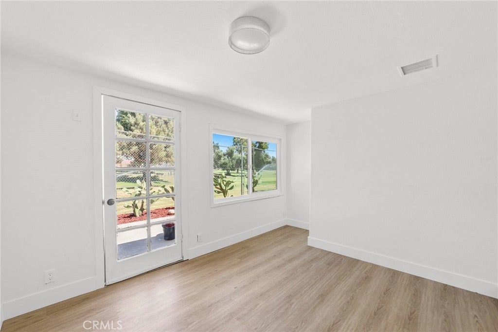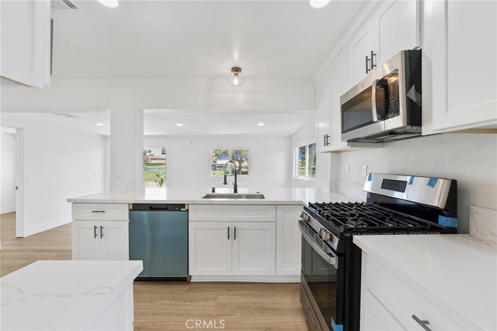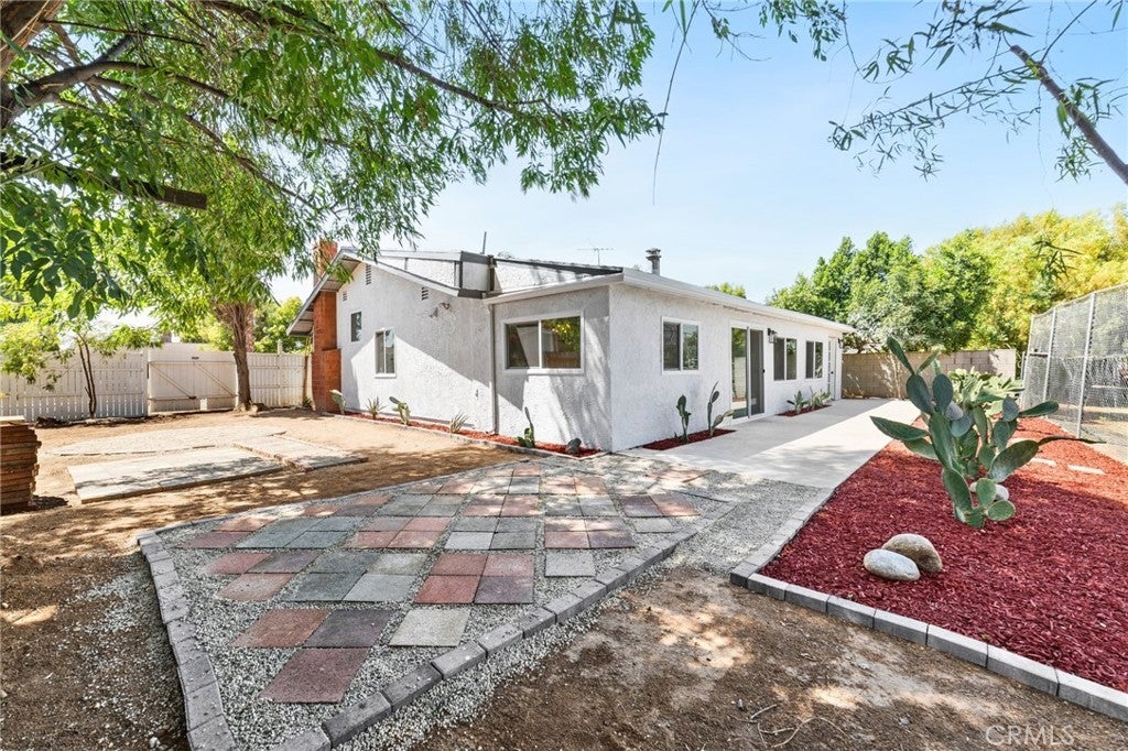 Nestled in the heart of Moreno Valley’s coveted Edgemont neighborhood, this fully remodeled 3-bedroom, 2-bath gem is a true standout. Offering modern updates and a flexible bonus room that can easily serve as a 4th bedroom or guest suite, this home is move-in ready and won’t last long! The charming gated front yard welcomes you with mature succulents, a flourishing grapevine, a majestic palm tree, and a fruitful peach tree. With a 2-car garage, a fenced area perfect for a dog run or garden, and ample curb appeal, the exterior sets the stage for what’s inside. Step into an open-concept living space awash with natural light, courtesy of brand-new dual-pane windows. Recessed lighting and sleek luxury vinyl plank flooring flow throughout, creating a warm and inviting atmosphere. The chef’s kitchen is a showstopper, boasting stunning Calacatta gold quartz countertops, top-of-the-line stainless steel appliances, and a large peninsula bar, perfect for entertaining or casual family meals. Relax in the primary suite, where you’ll wake up to breathtaking views of the lush golf course. The spa-inspired en-suite bath features dual vanities and a beautifully tiled walk-in shower, offering the ultimate retreat. A versatile flex space within the suite is perfect for a nursery, office, or serene reading nook. Two additional bedrooms plus the bonus room provide ample space for family, guests, or whatever your lifestyle demands. The main bath dazzles with a soaking tub, updated vanities, and a unique distressed-style picket fence tile surround, adding character and charm to the space. Outside, the private backyard is an entertainer’s dream. Enjoy serene golf course vistas, a tranquil cactus garden, a cozy firepit circle, and a spacious paved area ideal for BBQs and outdoor gatherings. With the potential for an ADU on this expansive lot, the possibilities are endless, whether you’re looking to expand your living space or create rental income. This move-in ready home is brimming with modern finishes, thoughtful upgrades, and plenty of flexible living space to suit your needs. Conveniently located near schools, shopping, and major freeways, this property checks all the boxes for comfort, style, and future growth. Homes like this don’t last long, schedule your showing NOW and make this Edgemont beauty yours today!