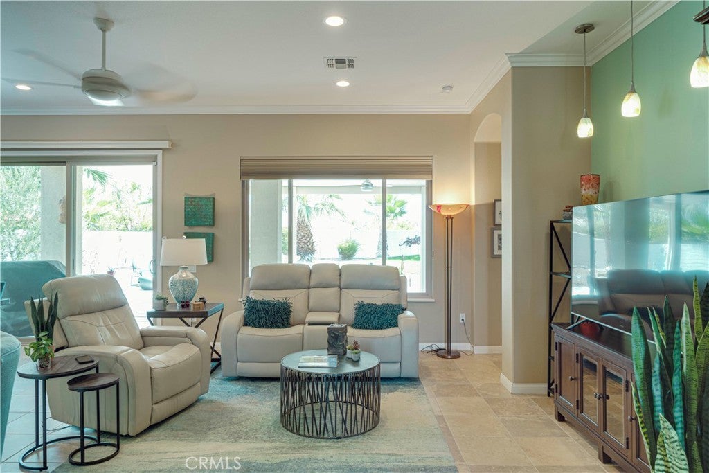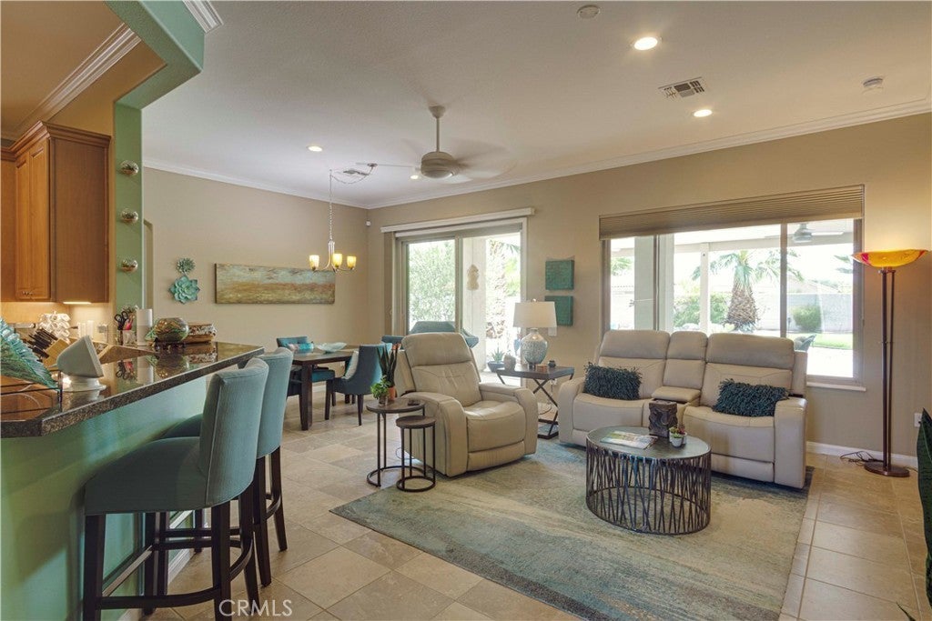 Entering the home for the first time, I was at a loss for words. Here I was in a beautiful single level resort style home with an indescribable allure and elusive quality that made it extra appealing. As I struggled to articulate my thoughts, I could only think of the French saying, “je ne sais quoi.” That special indescribable wonderful feeling that brings peace and wonder to the heart. Perhaps the difference is the home’s lovely two bedrooms and baths open design, chef’s kitchen, abundant storage, custom bedroom closets, newer walk-in bathtub and how the living spaces lures one to seamlessly connect with the property’s expansive resort like landscapes! This highly sought after San Emilio floor plan home is located in Sun City Shadow Hills. A 55+ community offering numerous amenities including an indoor pool, resort-style outdoor pool & spa, state-of-the art fitness center, an aerobics/dance studio and two amazing Golf courses! WARNING: Once you walk into this home and feel that cool French thing, je ne sais quoi, you are not gonna want to leave! Bring your checkbook!!
