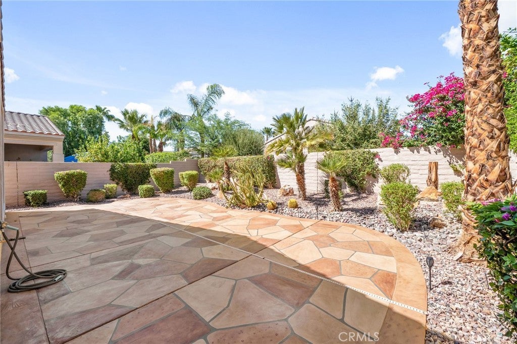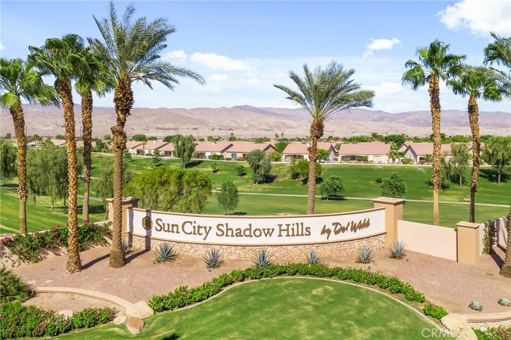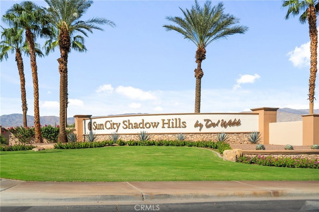 Experience resort-style living in this beautifully upgraded Montoya floor plan, located in one of the desert’s most desirable 55+ guard-gated communities Sun City Shadow Hills! This 2-bedroom, 2-bath home with den/office offers an open, light-filled layout that’s perfect for entertaining friends or simply relaxing in style. The chef’s kitchen features granite counters, stainless appliances, and new cooktop & microwave. Enjoy new carpet, wood shutters, tile floors, and ceiling fans throughout. Step outside from the living area to a covered patio with flagstone concrete and a ceiling fan, overlooking a low-maintenance landscaped backyard, ideal for morning coffee or sunset gatherings. The primary suite offers a walk-in closet and a bathroom with dual vanities and a walk-in shower with glass doors. Additional highlights include a laundry room with sink and a two-car garage with storage racks and its own A/C unit, perfect for a workshop or hobby space. This move-in ready home invites you to start enjoying year-round resort living with pools, fitness center, pickleball, tennis, bocce, golf, clubs & 24-hour guard-gated security.